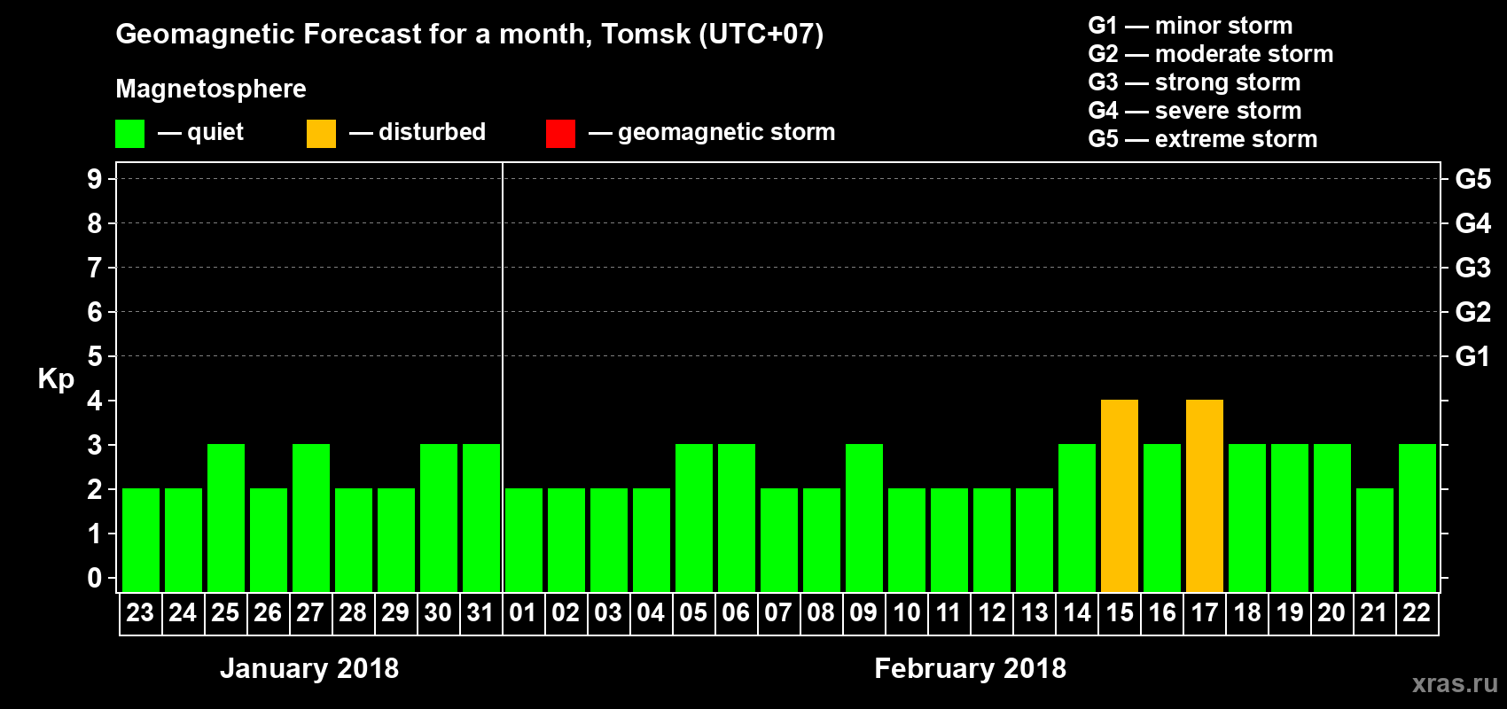 Geomagnetic storm forecast in Tomsk for Jan 23, 2018