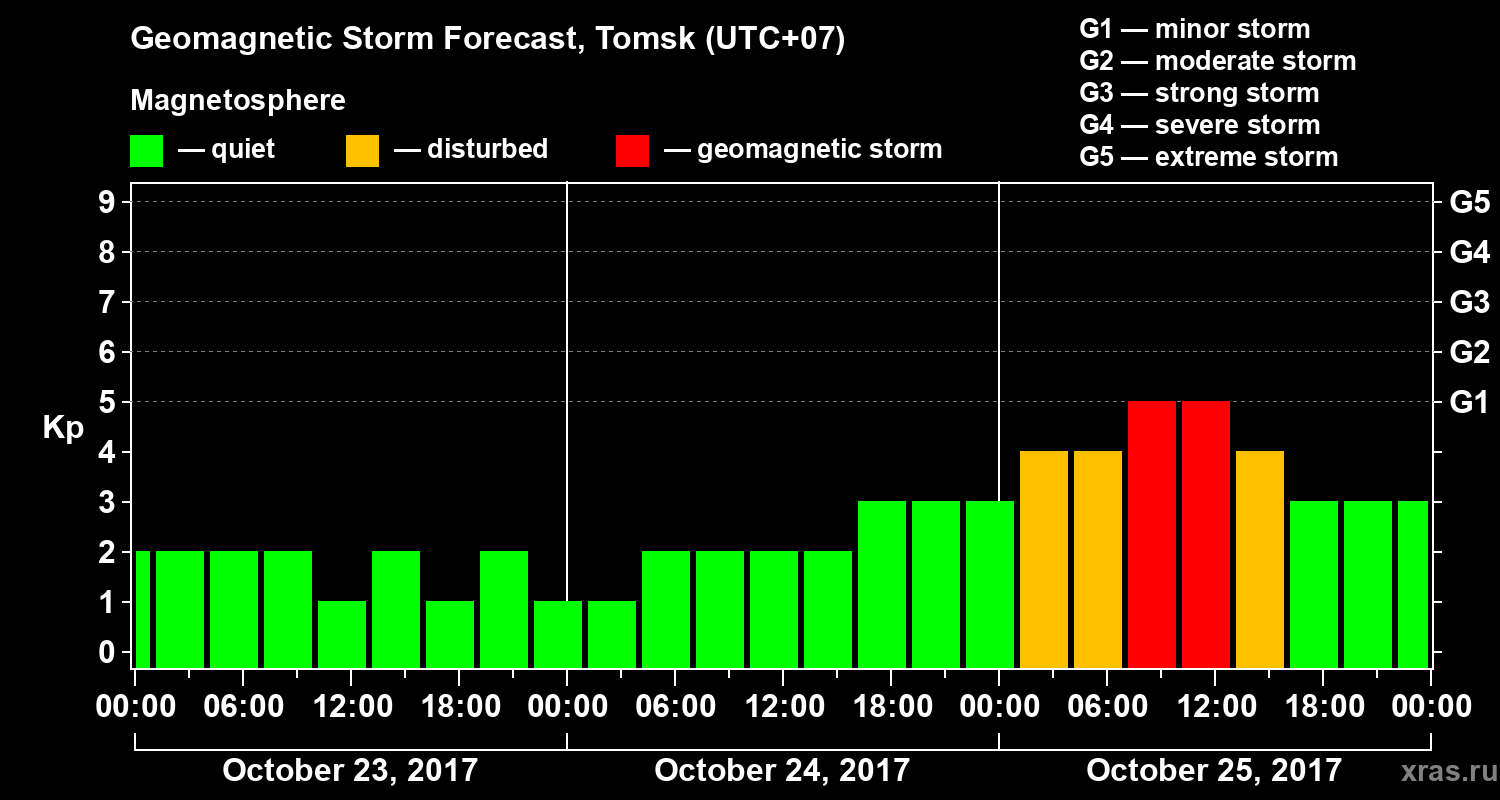 Geomagnetic storm forecast in Tomsk for Oct 23, 2017
