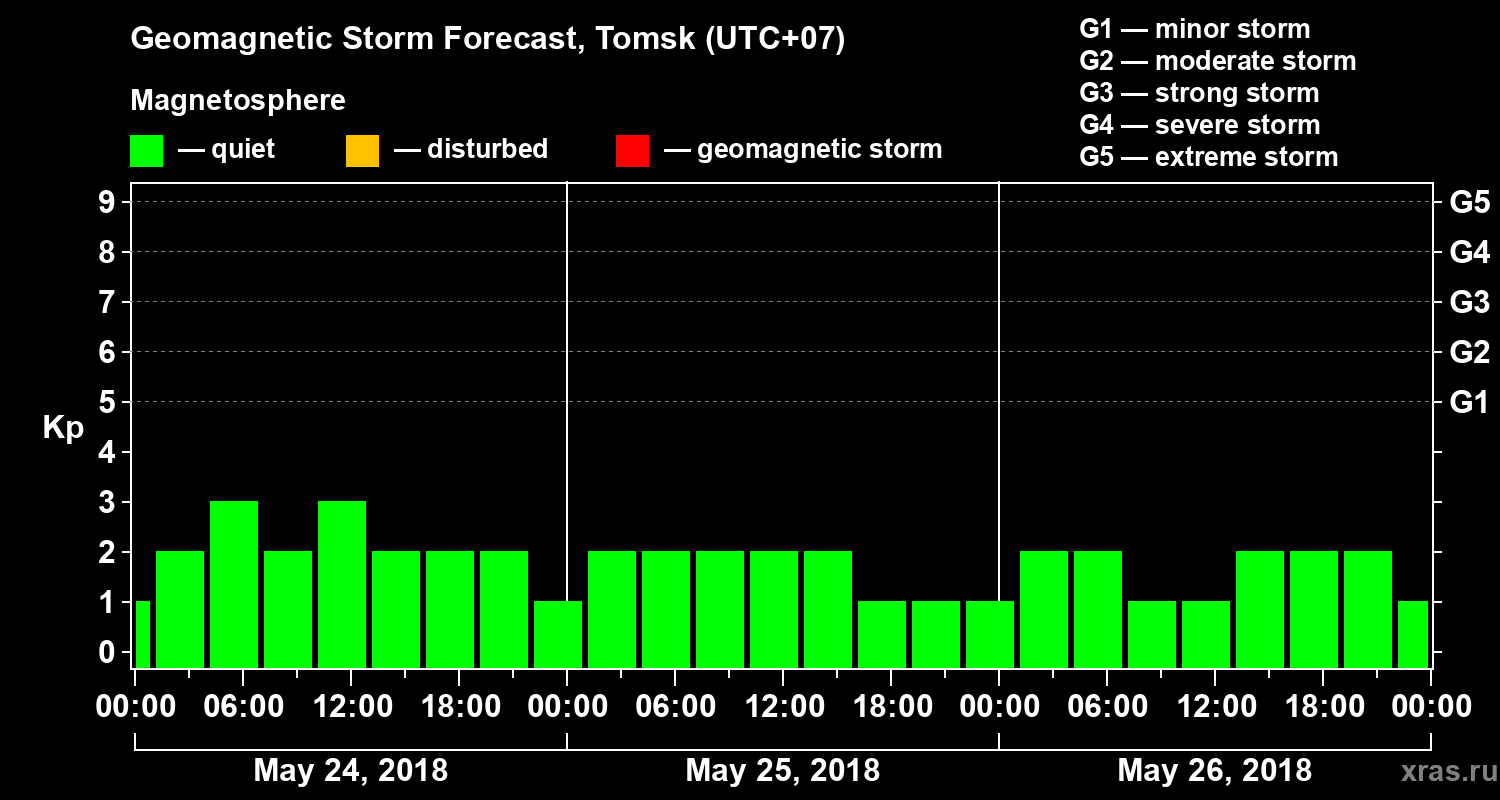 Geomagnetic activity forecast in Tomsk — May 24, 2018