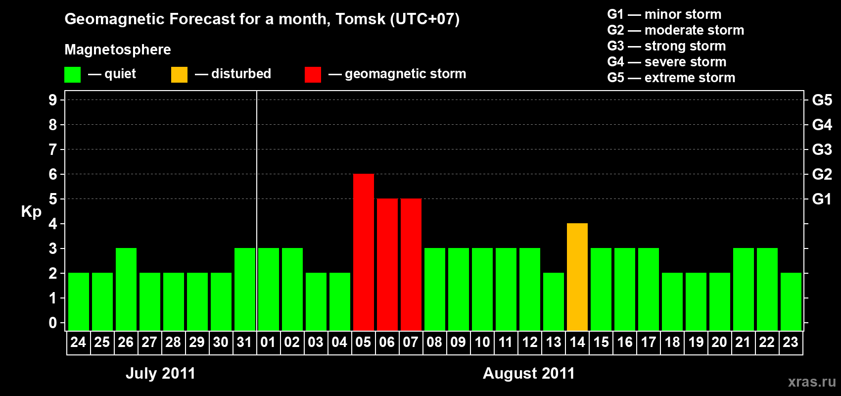 Geomagnetic storm forecast in Tomsk for Jul 24, 2011