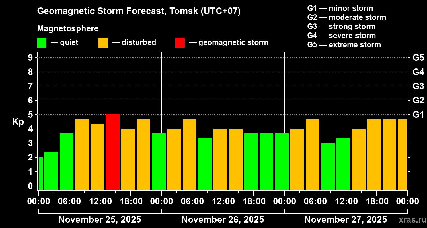 Geomagnetic storm forecast in Tomsk for Nov 25, 2025