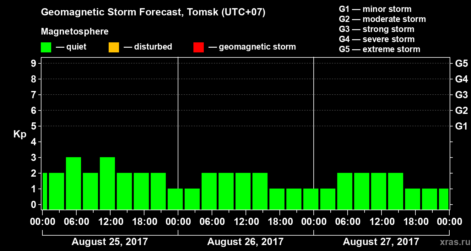 Geomagnetic storm forecast in Tomsk for Aug 25, 2017