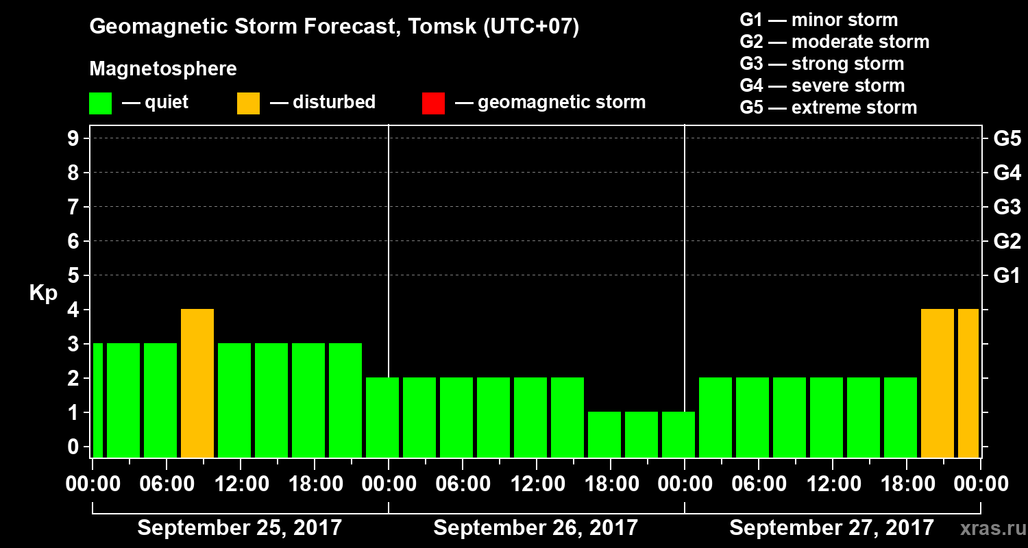 Geomagnetic storm forecast in Tomsk for Sep 25, 2017