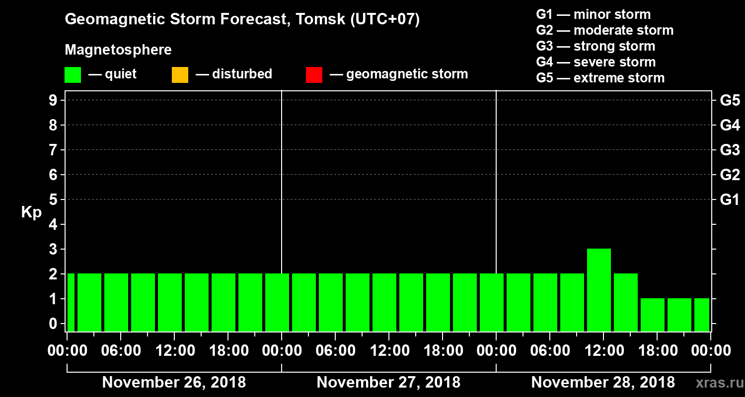 Geomagnetic activity forecast in Tomsk — Nov 26, 2018