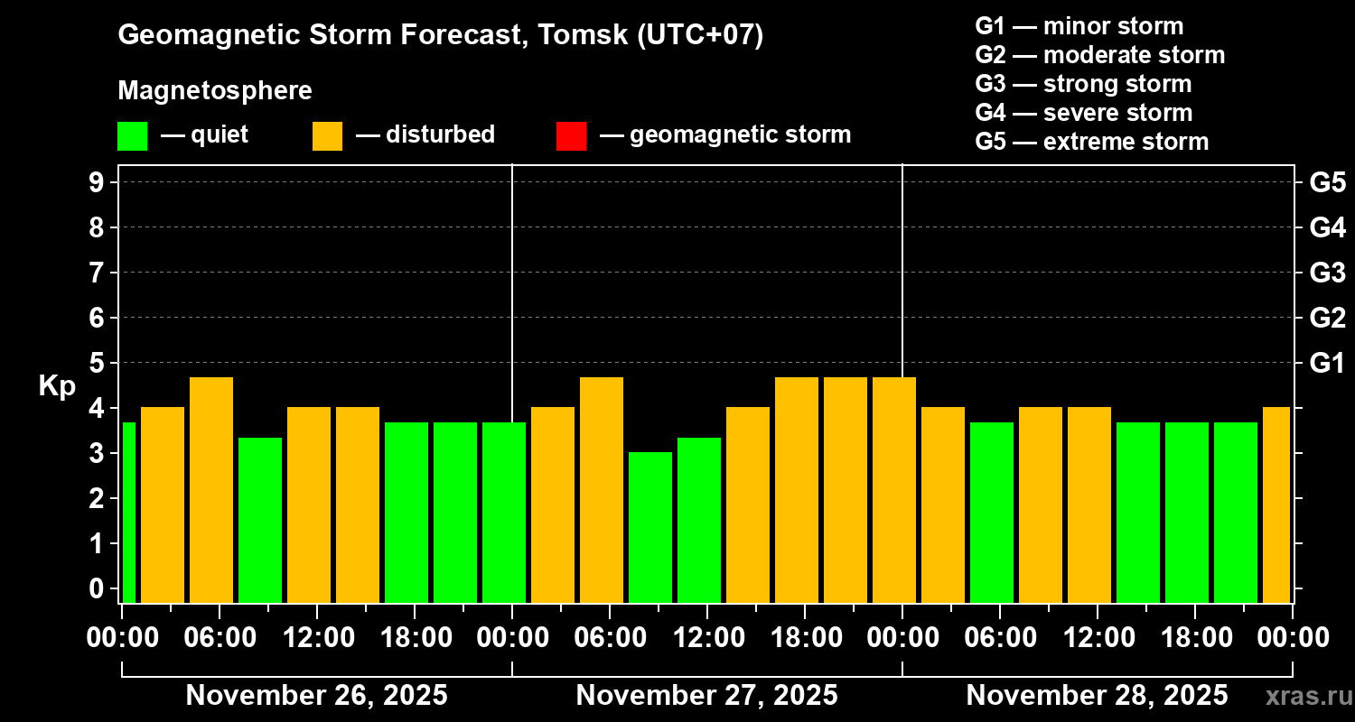 Geomagnetic activity forecast in Tomsk — Nov 26, 2025