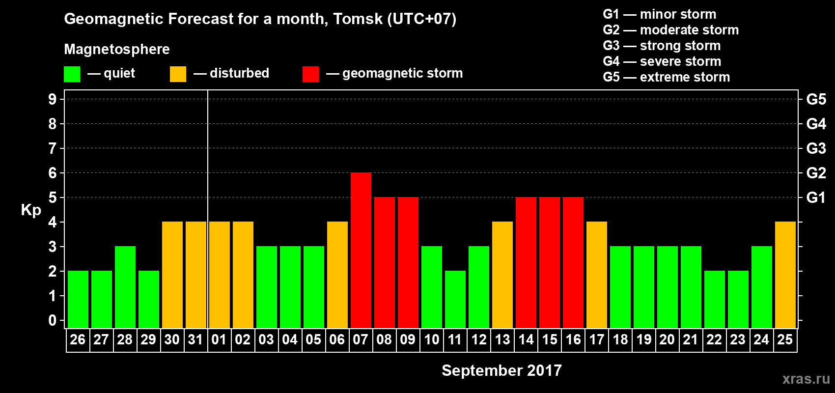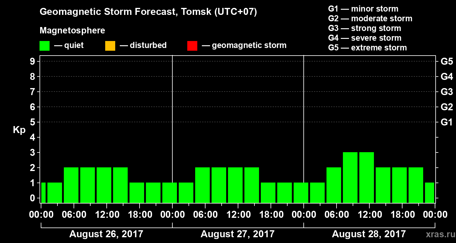Geomagnetic storm forecast in Tomsk for Aug 26, 2017