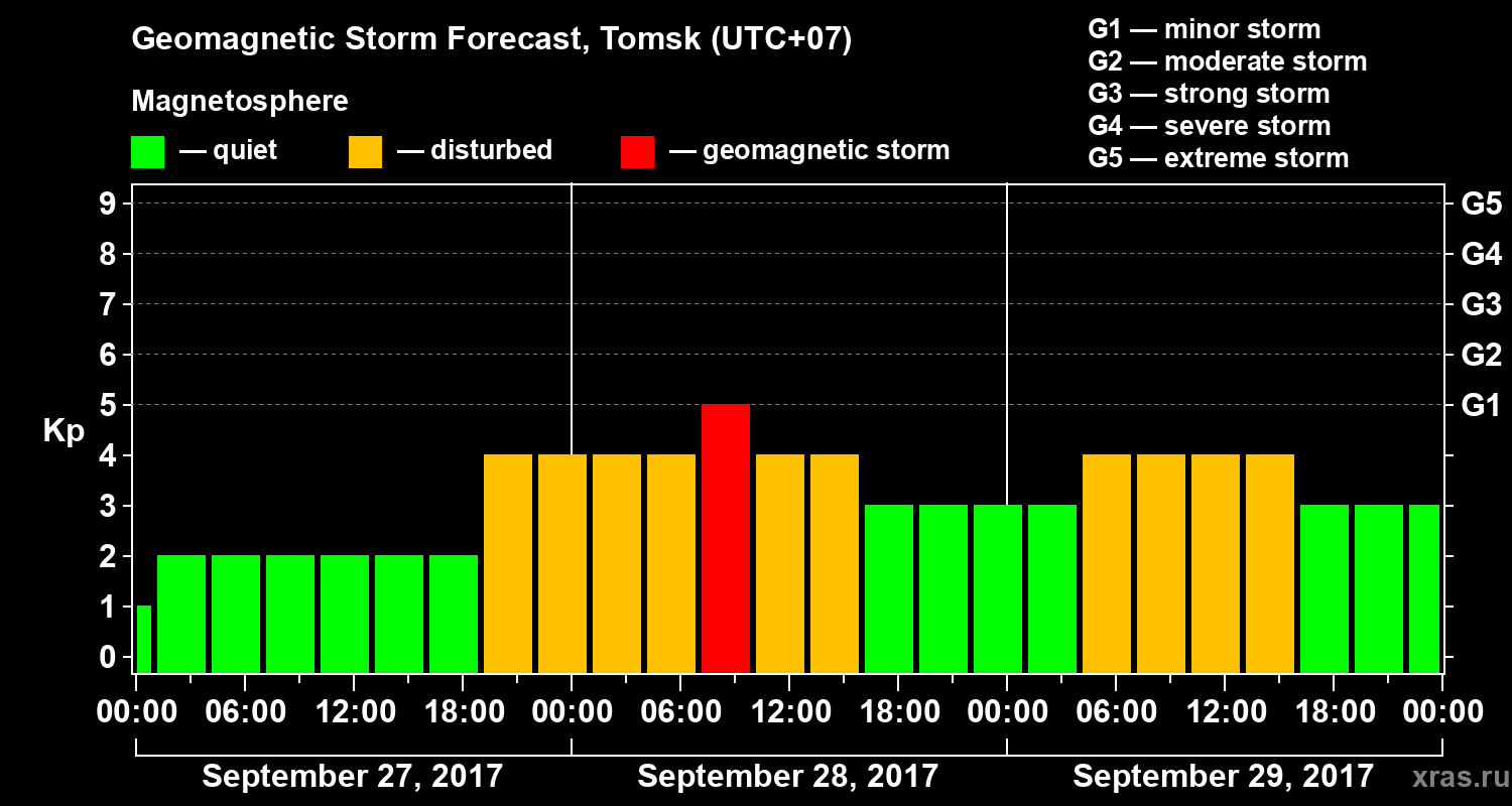 Geomagnetic storm forecast in Tomsk for Sep 27, 2017