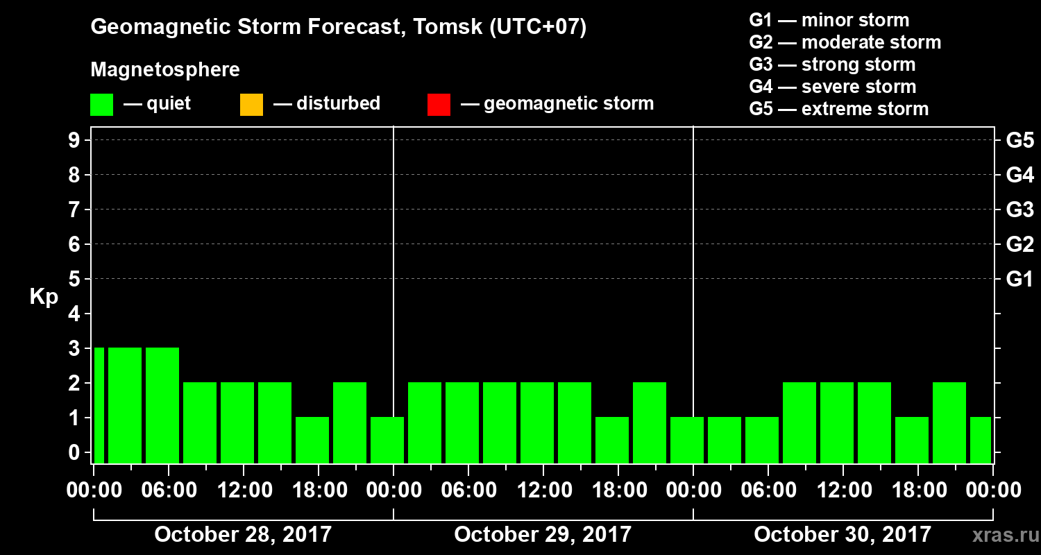 Geomagnetic activity forecast in Tomsk — Oct 28, 2017