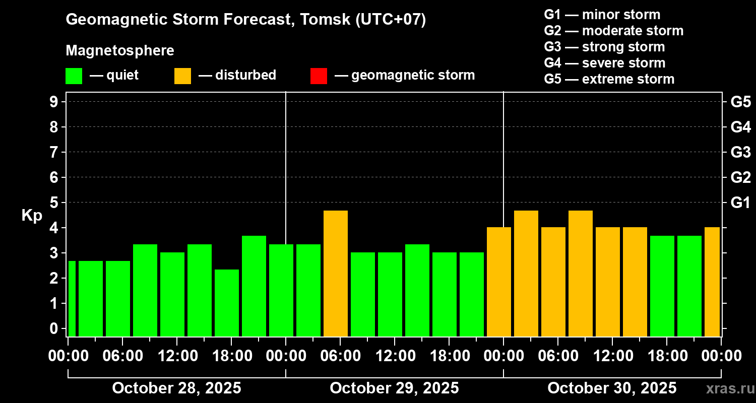 Geomagnetic activity forecast in Tomsk — Oct 28, 2025