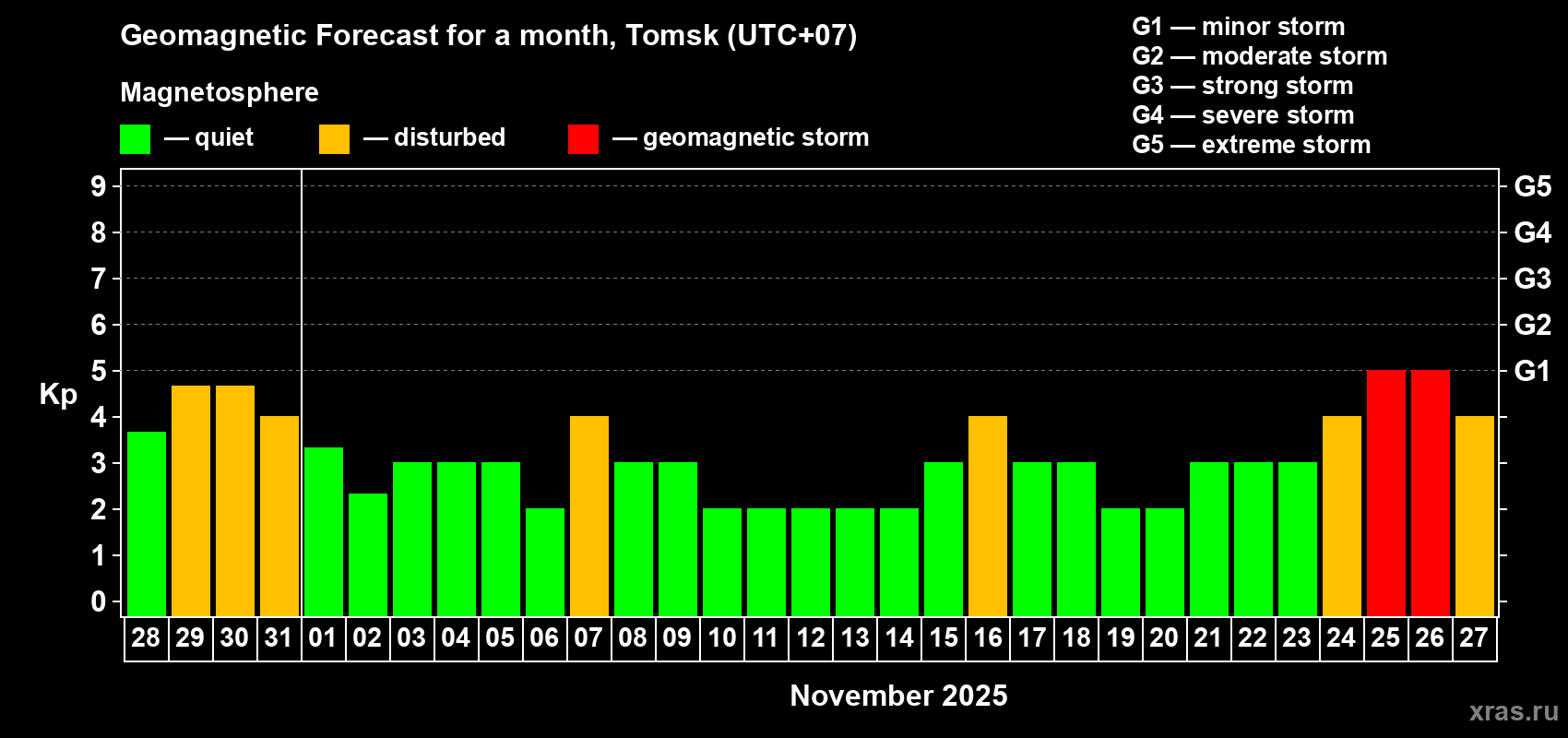 Geomagnetic storm forecast in Tomsk for Oct 28, 2025