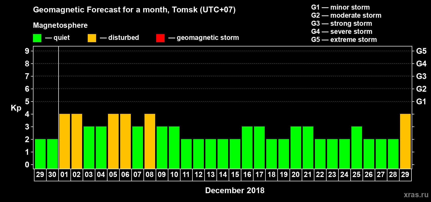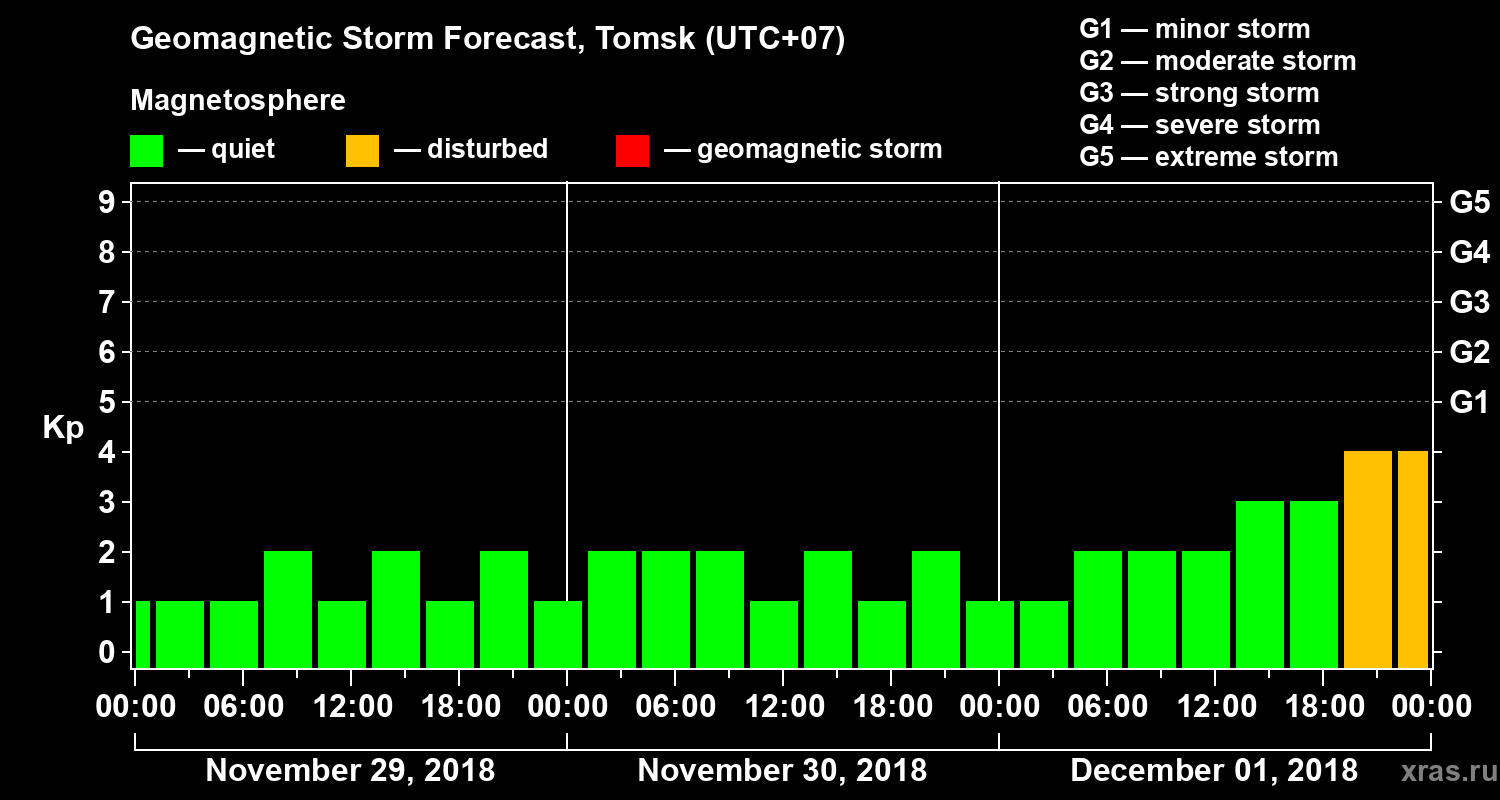 Geomagnetic activity forecast in Tomsk — Nov 29, 2018