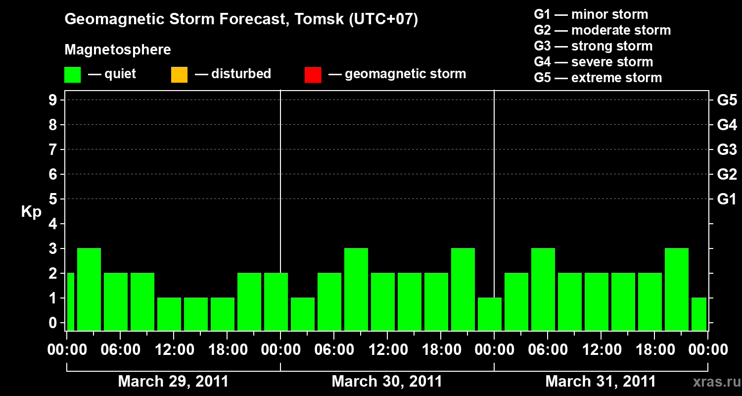 Geomagnetic storm forecast in Tomsk for Mar 29, 2011
