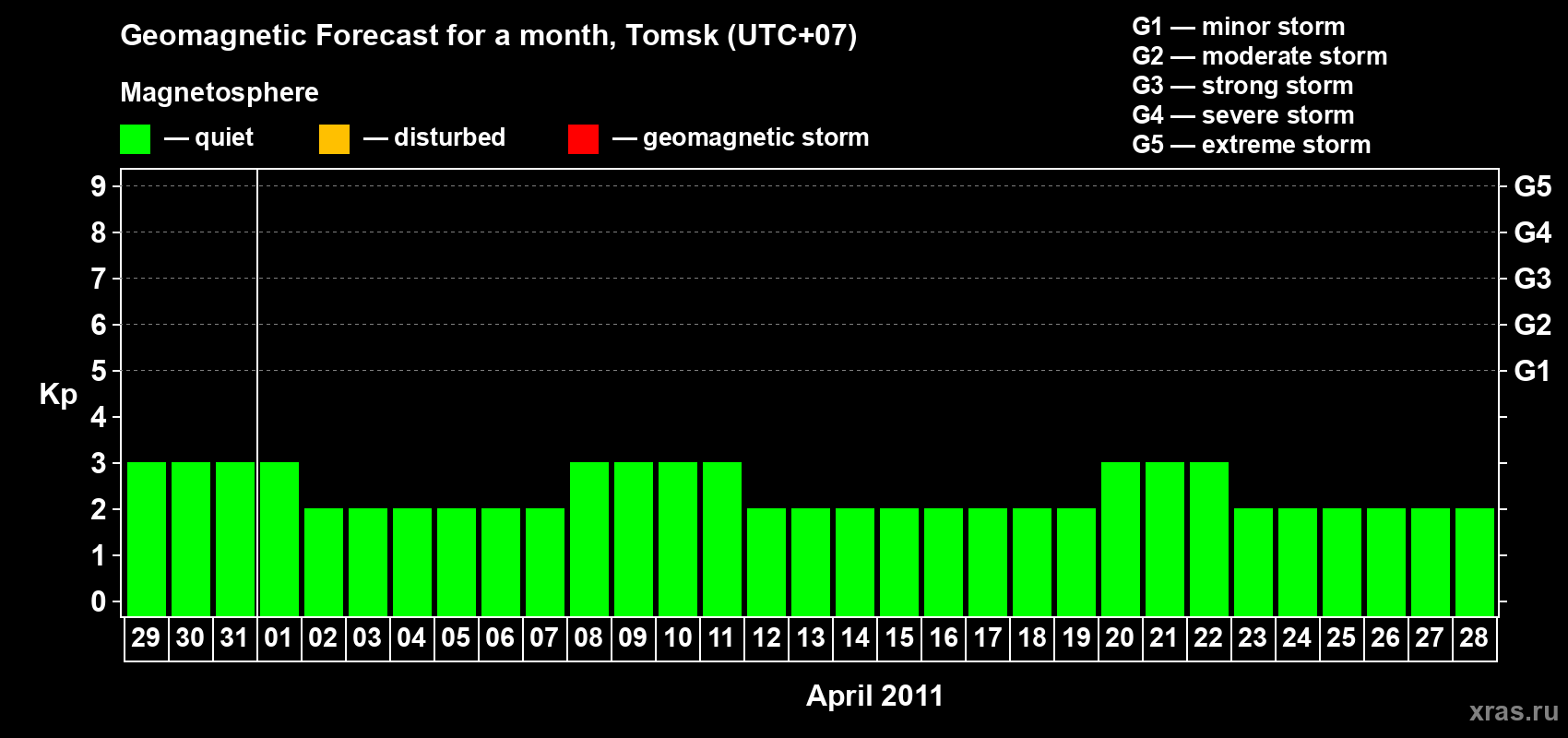 Geomagnetic activity forecast in Tomsk — Mar 29, 2011