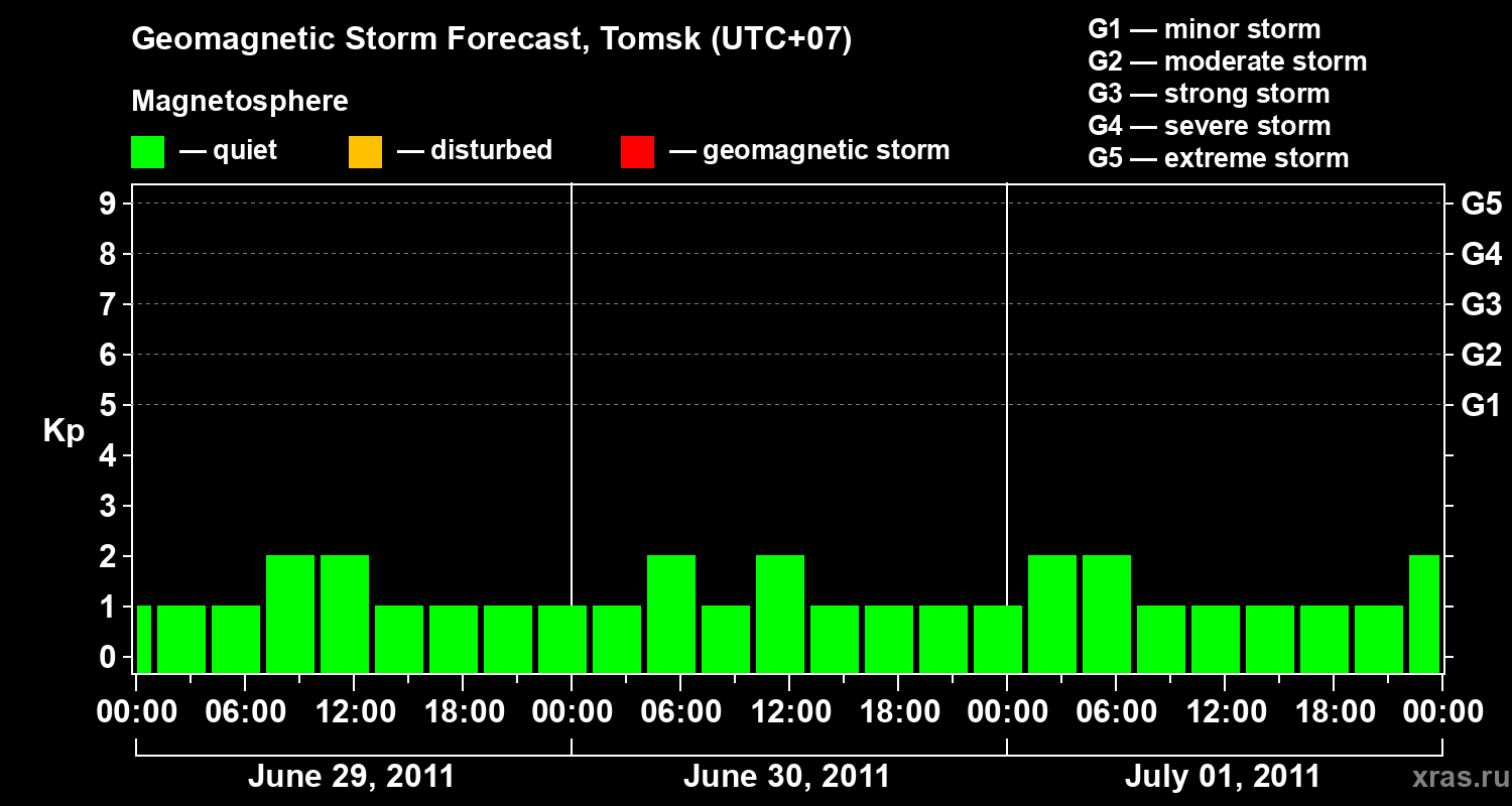 Geomagnetic storm forecast in Tomsk for Jun 29, 2011