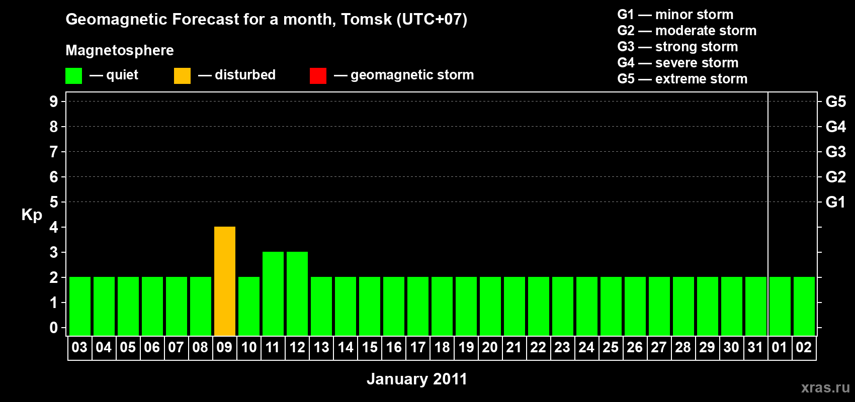Geomagnetic storm forecast in Tomsk for Jan 03, 2011