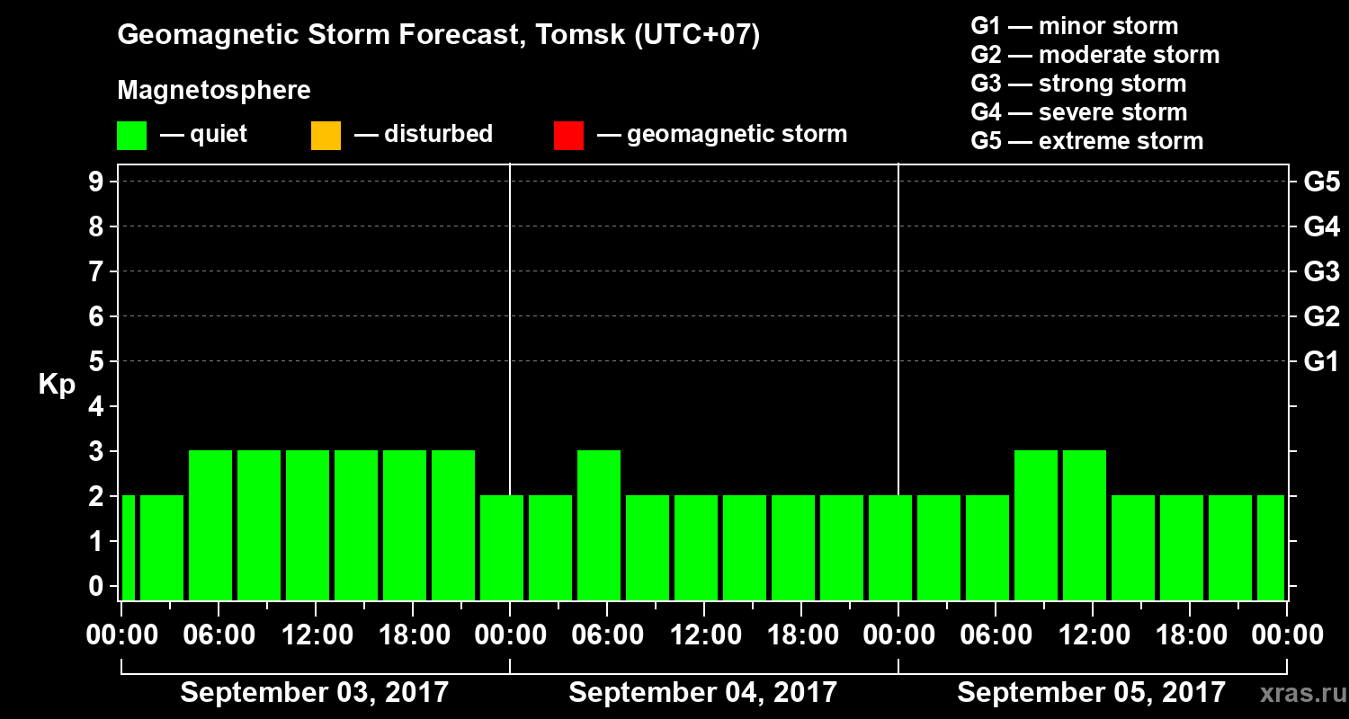 Geomagnetic storm forecast in Tomsk for Sep 03, 2017