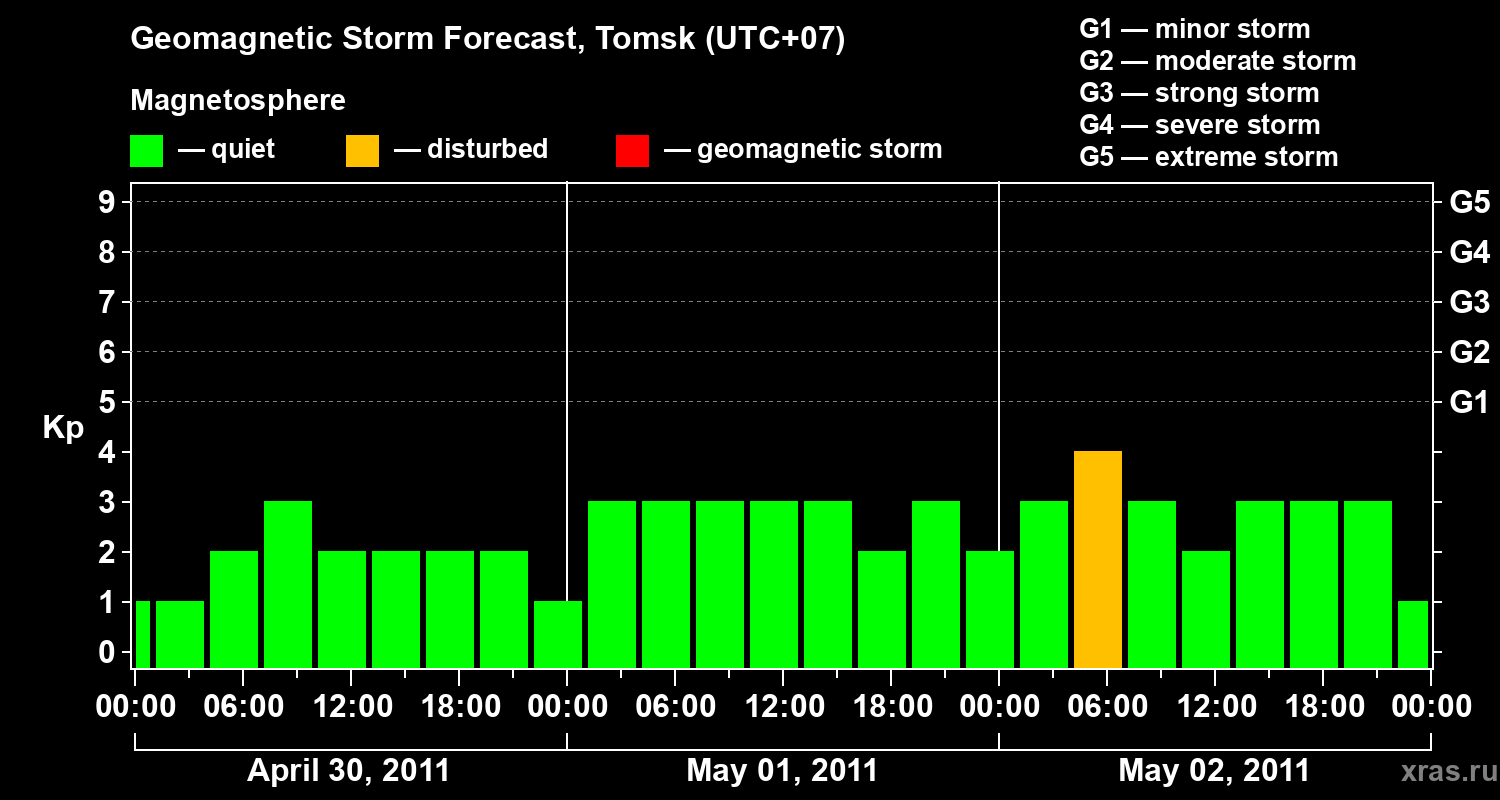 Geomagnetic storm forecast in Tomsk for Apr 30, 2011