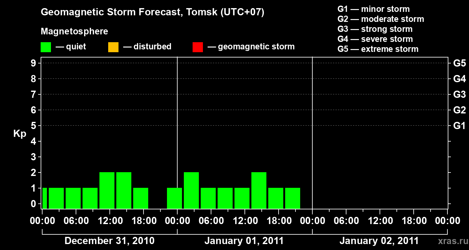 Geomagnetic storm forecast in Tomsk for Dec 31, 2010
