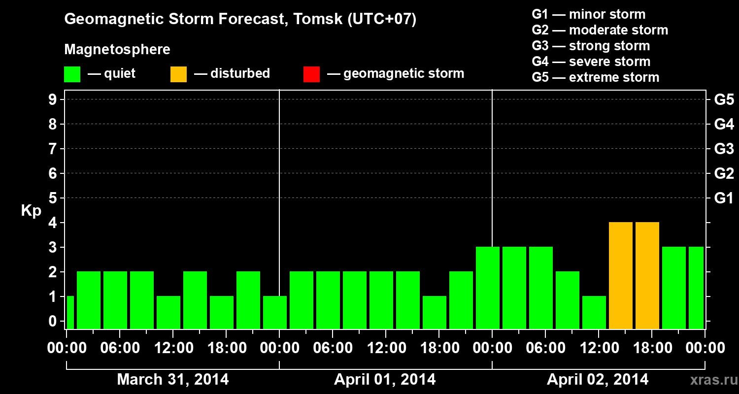 Geomagnetic storm forecast in Tomsk for Mar 31, 2014