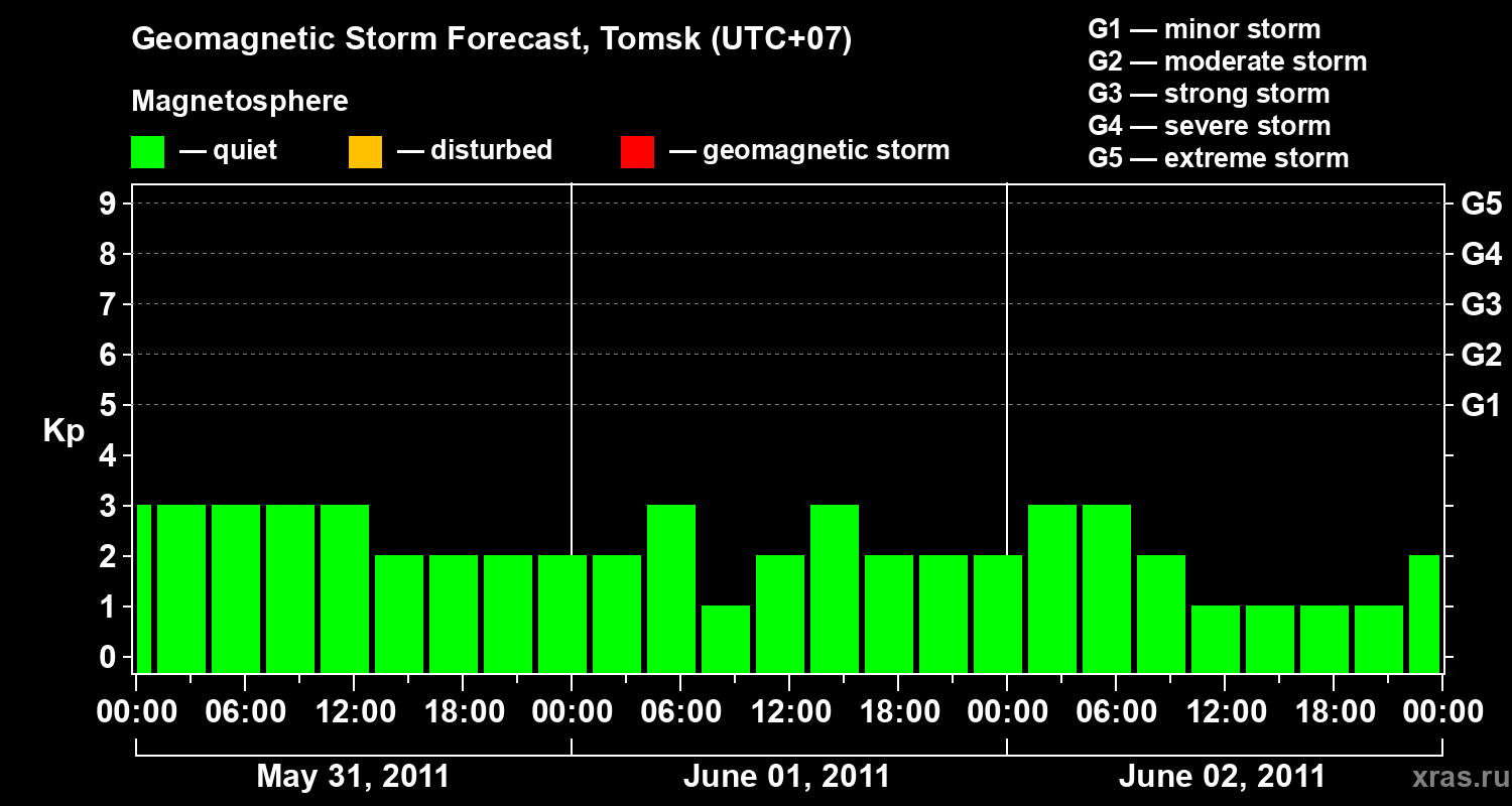 Geomagnetic storm forecast in Tomsk for May 31, 2011