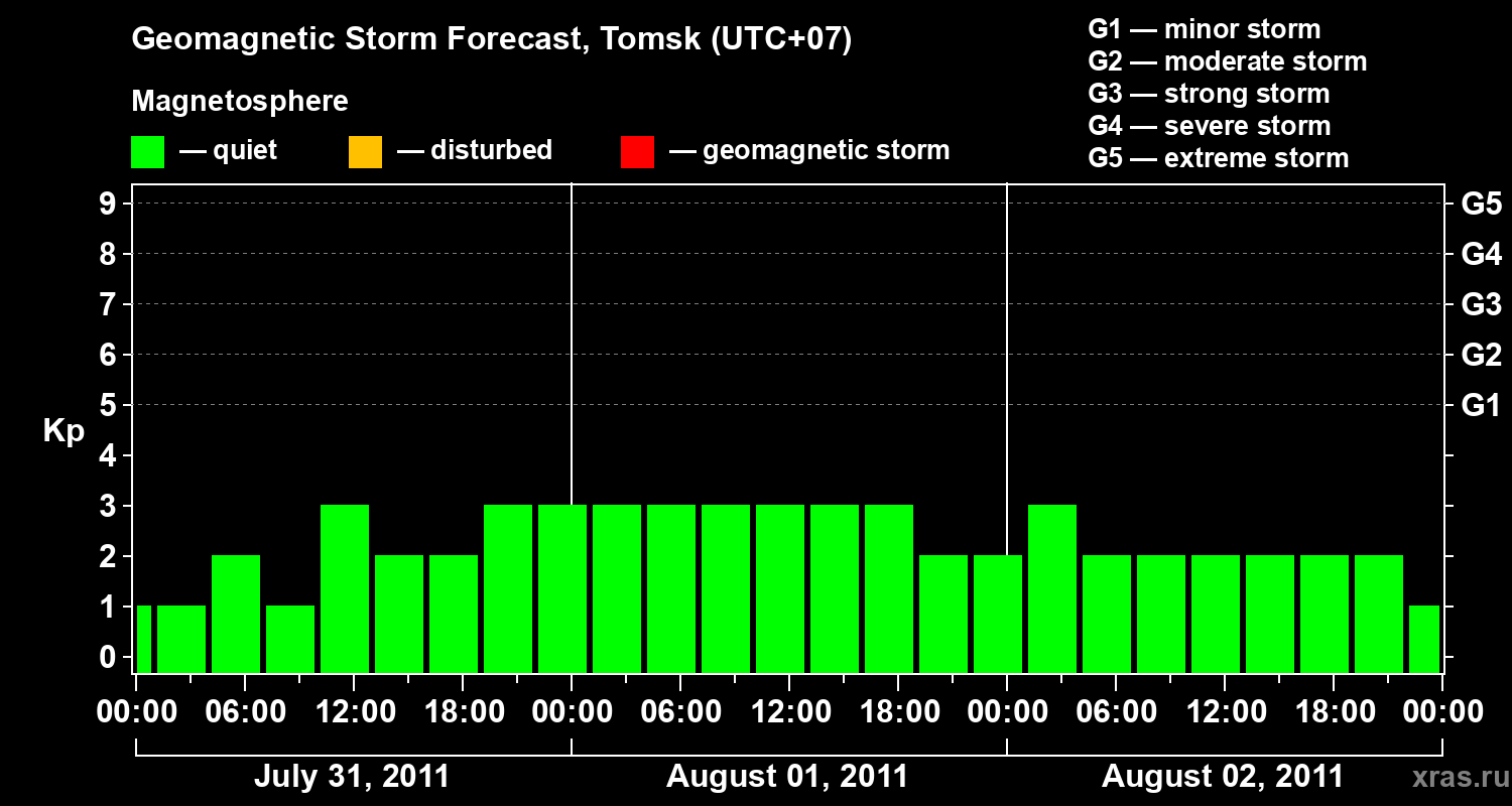 Geomagnetic storm forecast in Tomsk for Jul 31, 2011