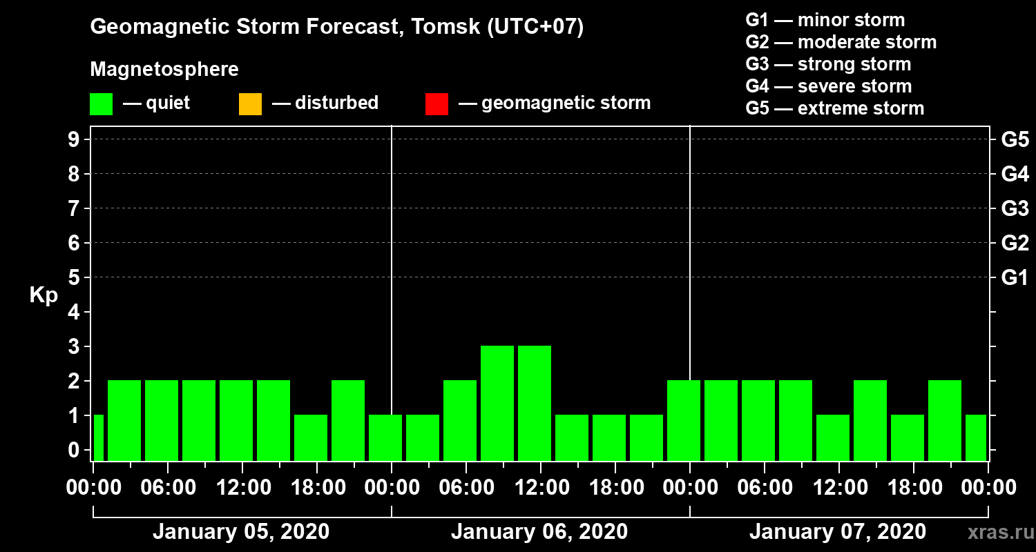 Geomagnetic storm forecast in Tomsk for Jan 05, 2020