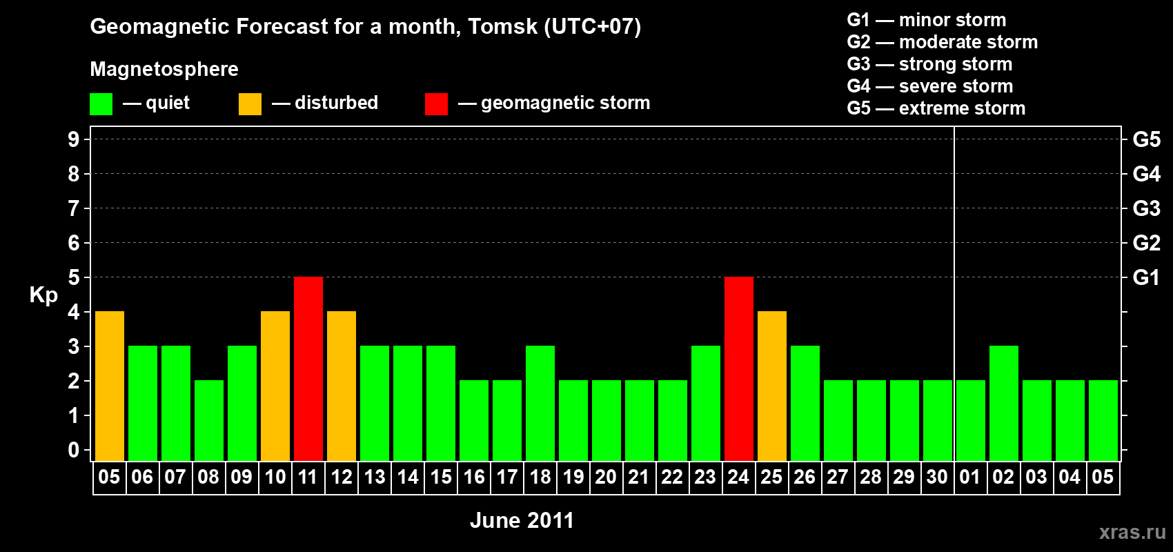 Geomagnetic storm forecast in Tomsk for Jun 05, 2011