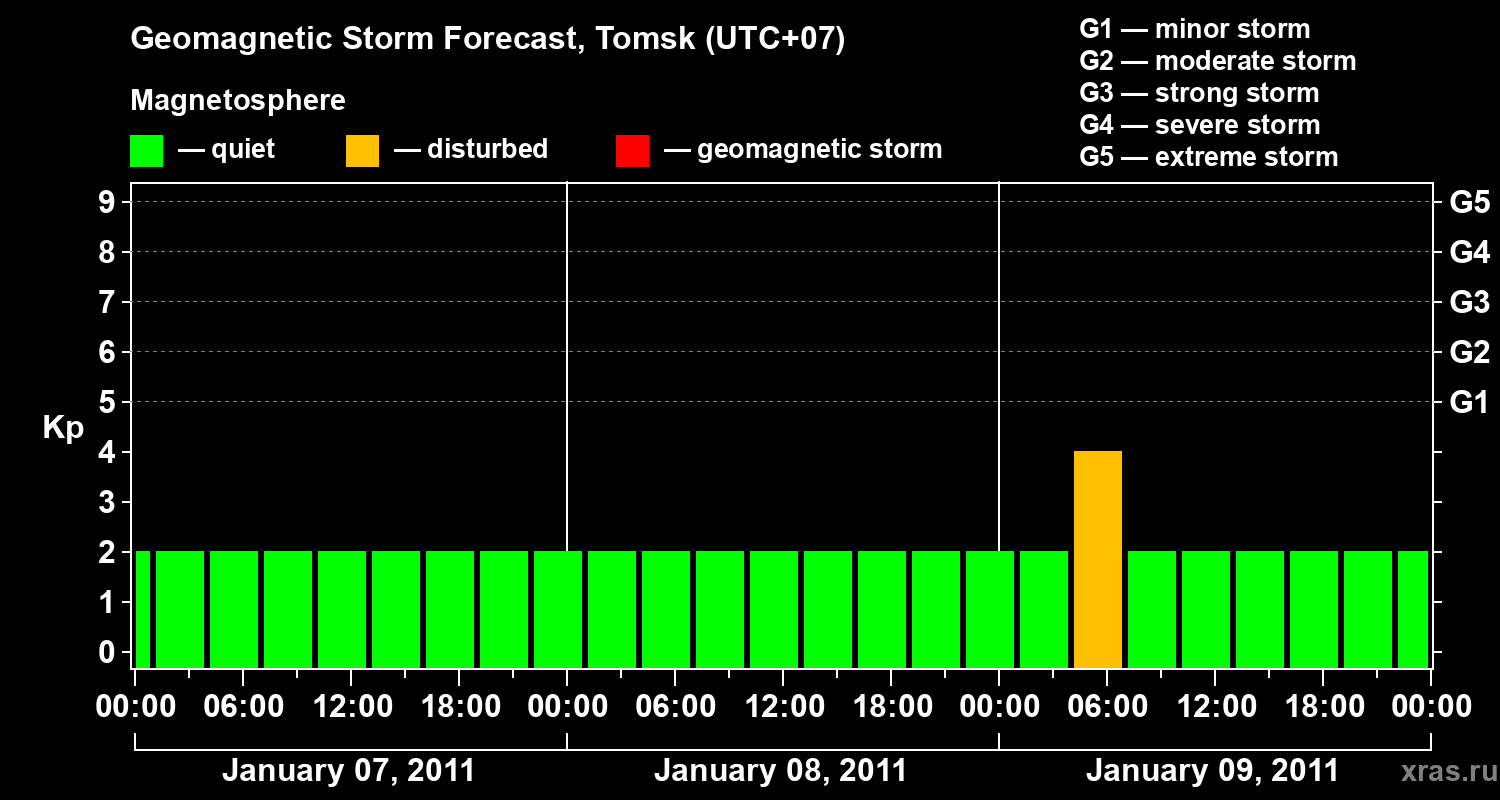 Geomagnetic storm forecast in Tomsk for Jan 07, 2011
