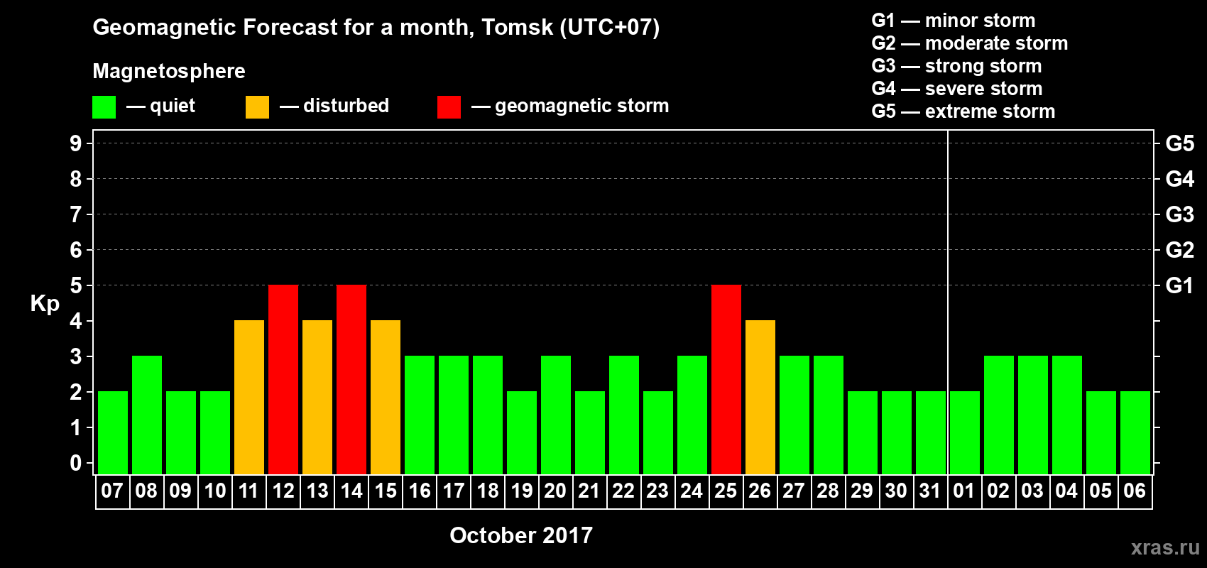 Geomagnetic storm forecast in Tomsk for Oct 07, 2017
