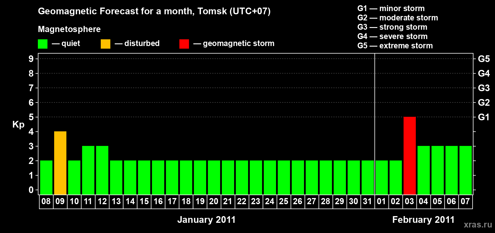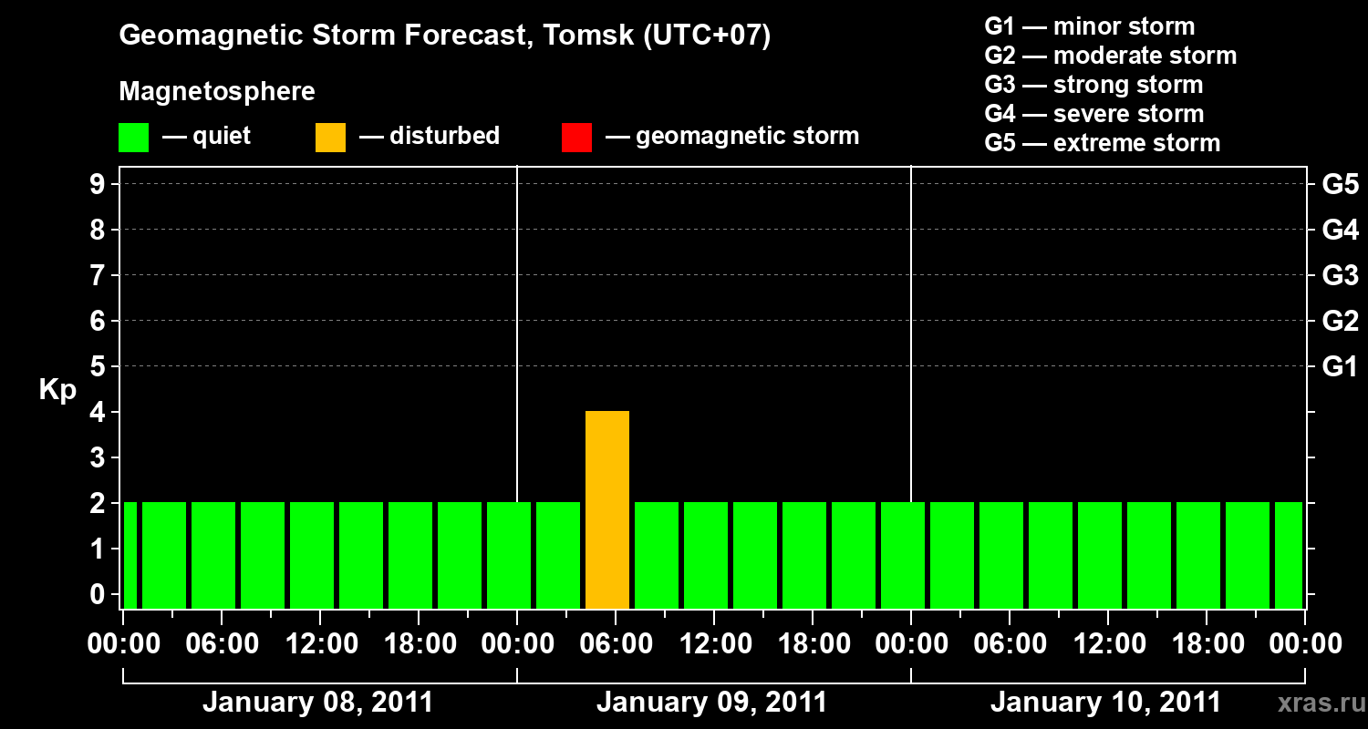 Geomagnetic storm forecast in Tomsk for Jan 08, 2011