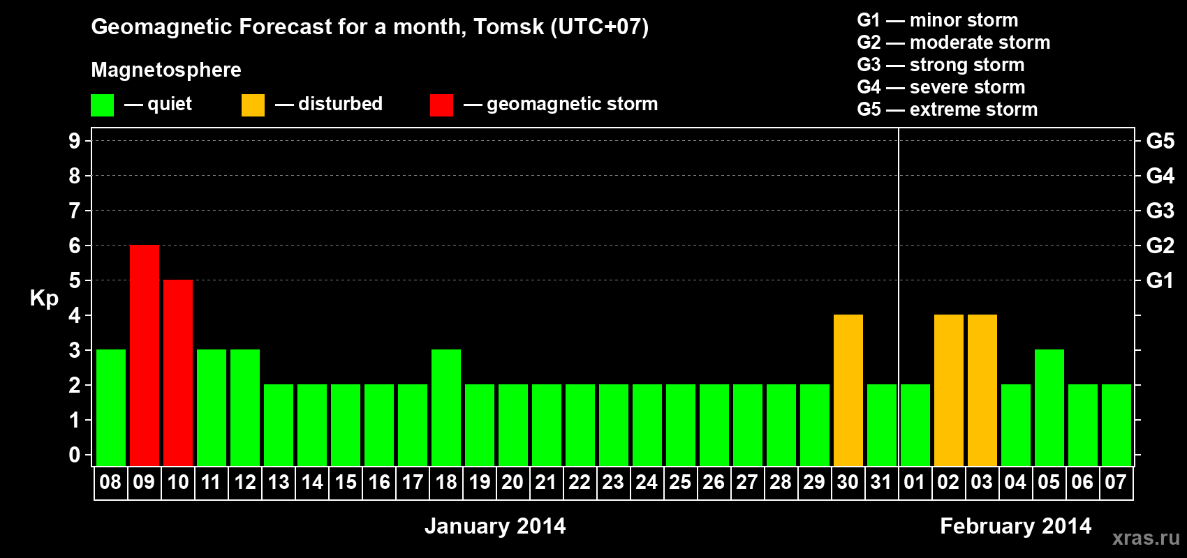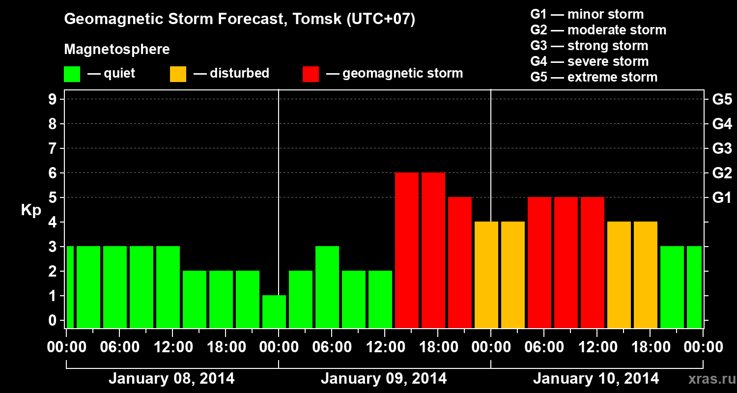 Geomagnetic storm forecast in Tomsk for Jan 08, 2014