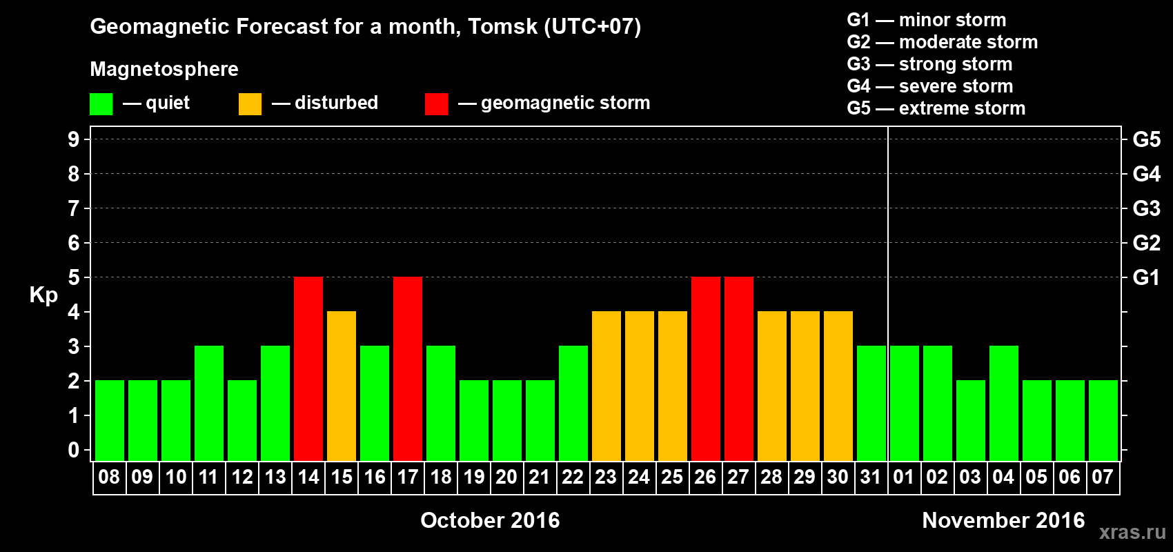 Geomagnetic activity forecast in Tomsk — Oct 08, 2016