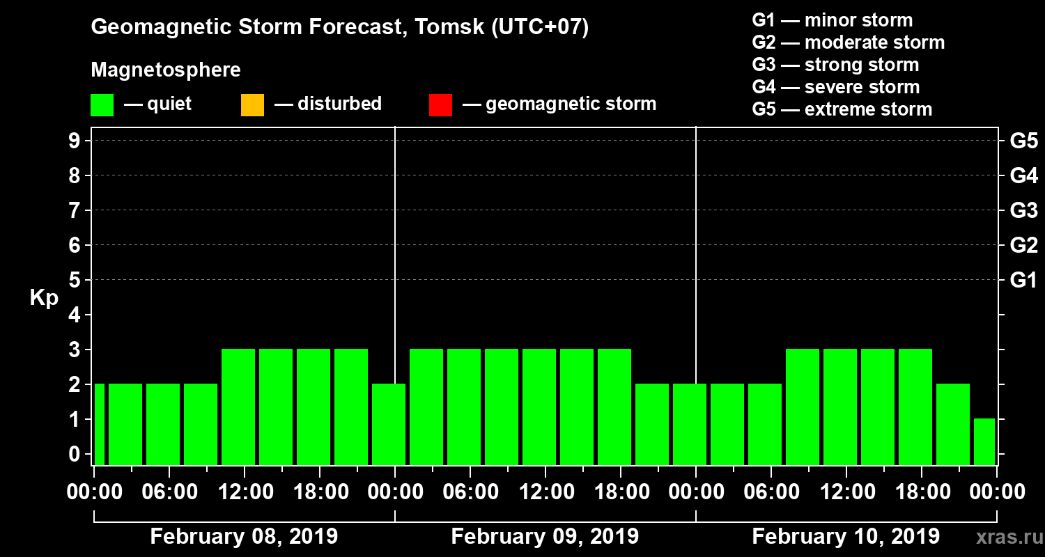 Geomagnetic storm forecast in Tomsk for Feb 08, 2019