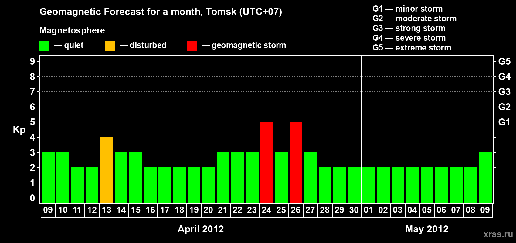 Geomagnetic storm forecast in Tomsk for Apr 09, 2012