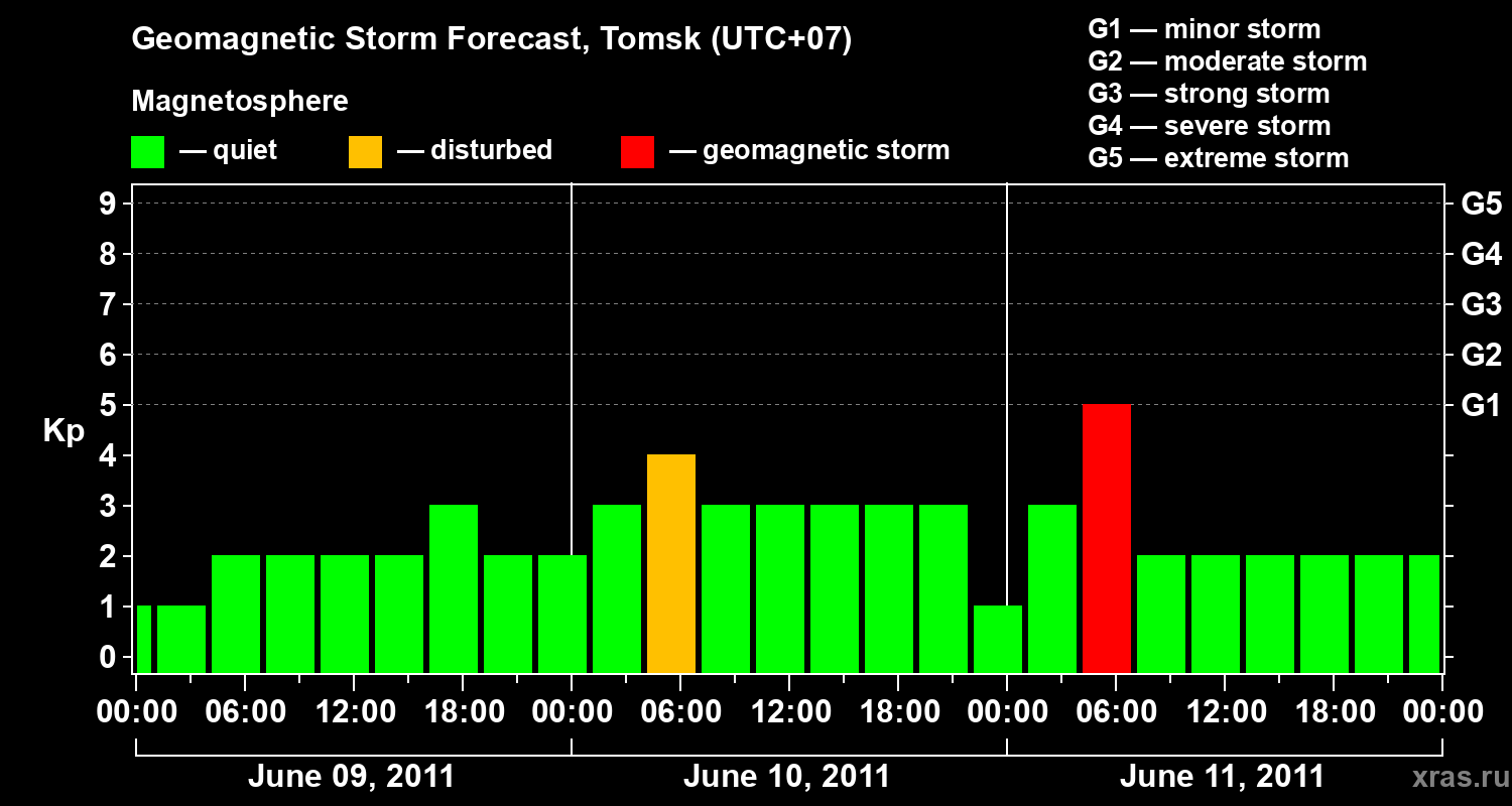 Geomagnetic storm forecast in Tomsk for Jun 09, 2011