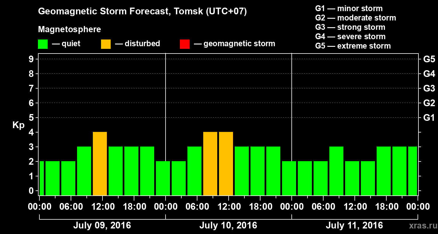 Geomagnetic storm forecast in Tomsk for Jul 09, 2016