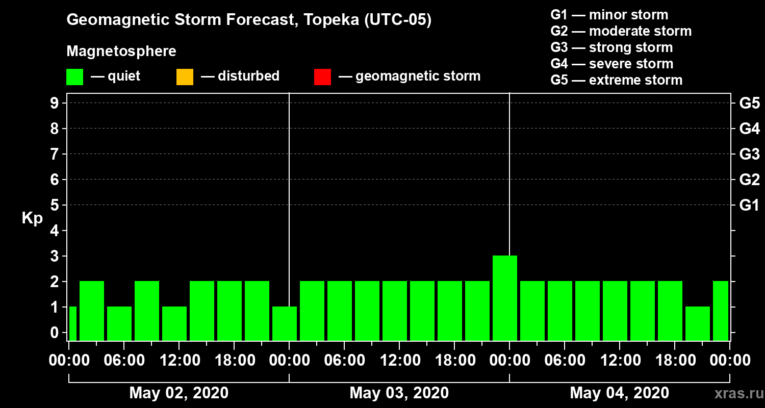 Geomagnetic storm forecast in Topeka for May 02, 2020