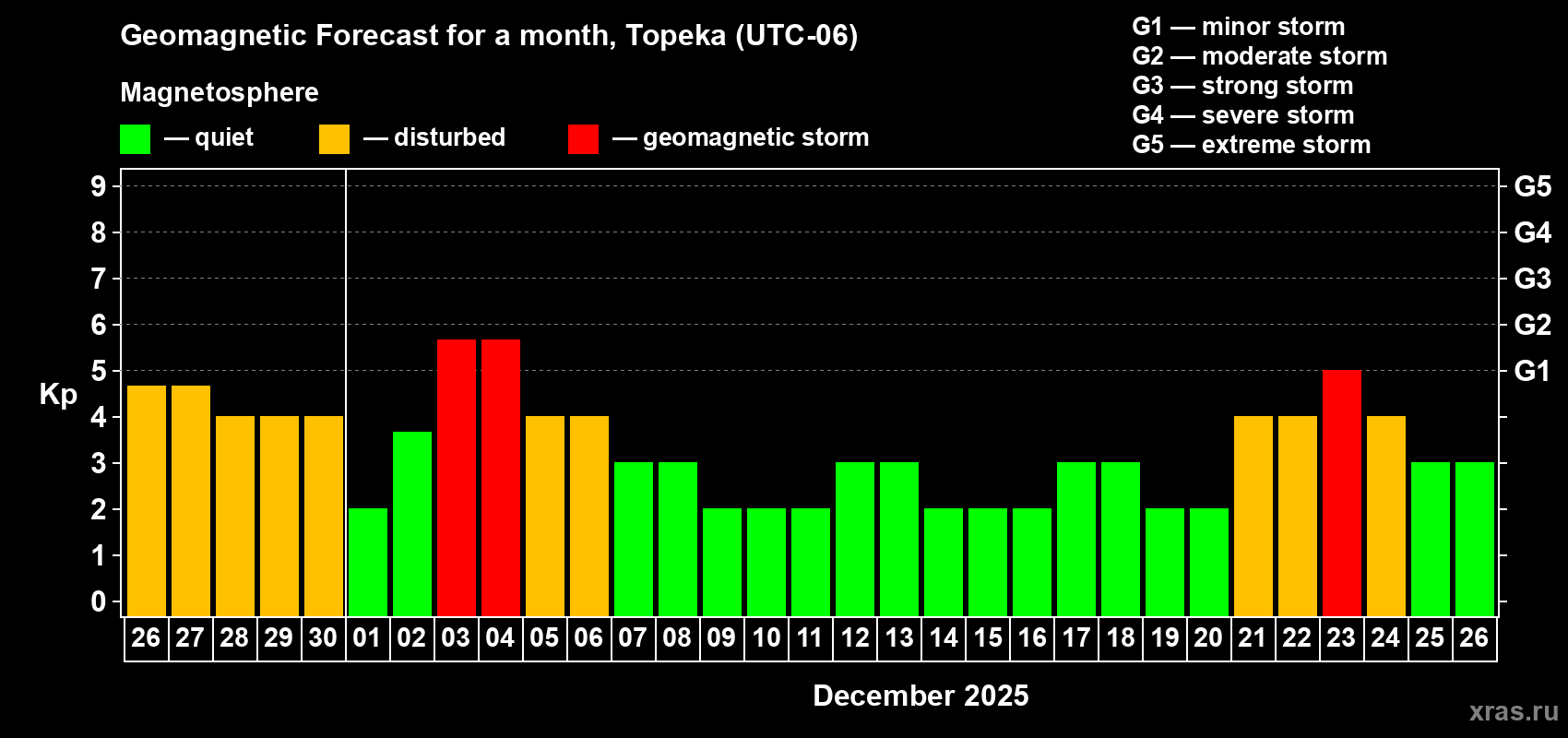 Geomagnetic storm forecast in Topeka for Nov 26, 2025