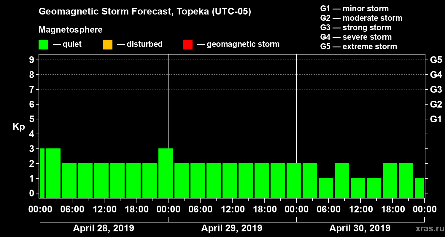 Geomagnetic storm forecast in Topeka for Apr 28, 2019