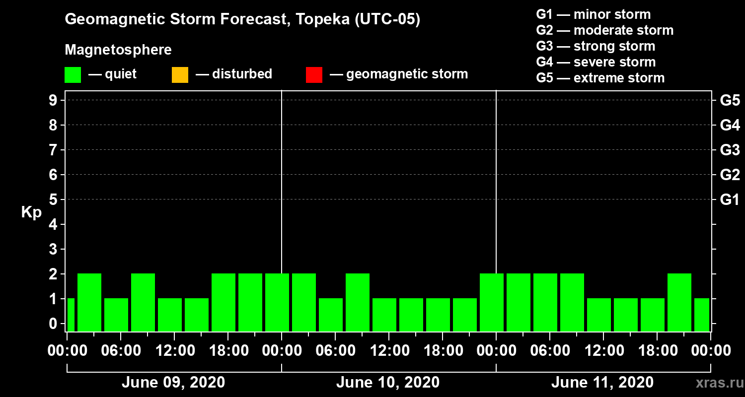 Geomagnetic storm forecast in Topeka for Jun 09, 2020