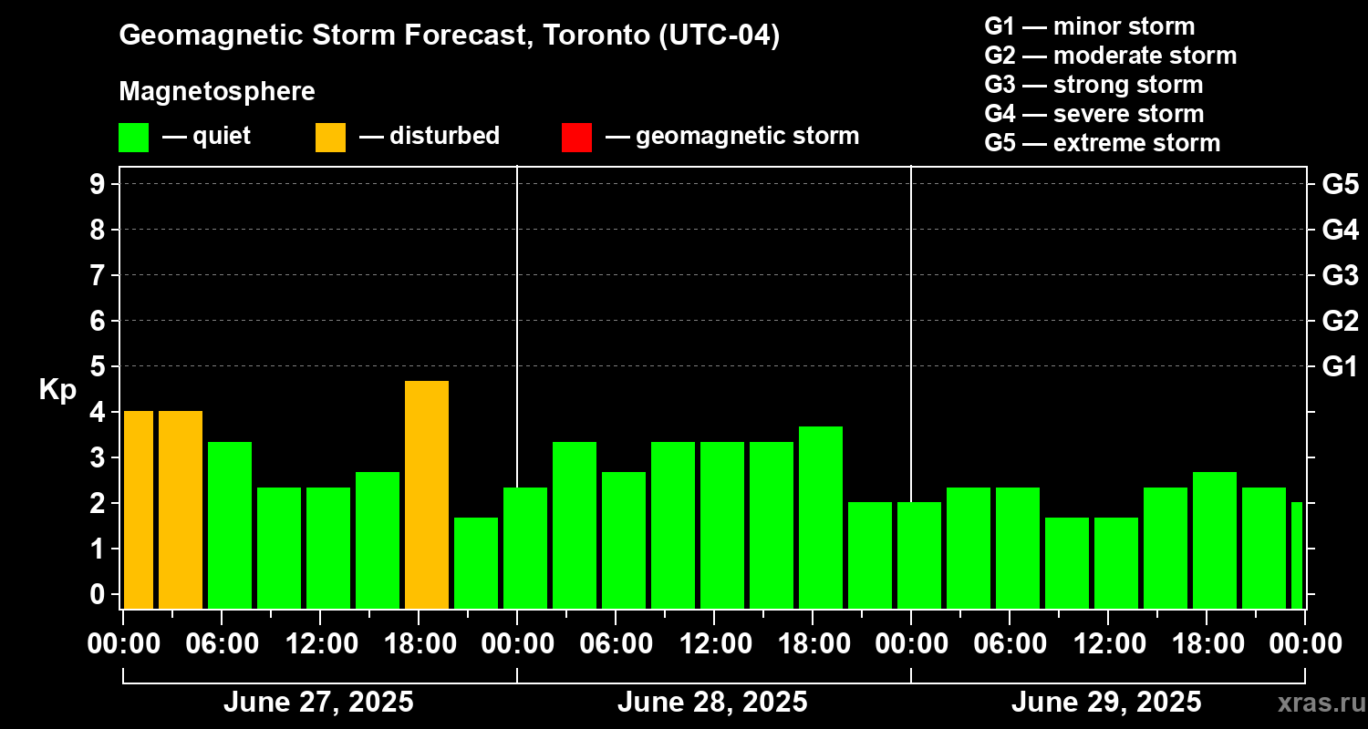Geomagnetic storm forecast in Toronto for Jun 27, 2025