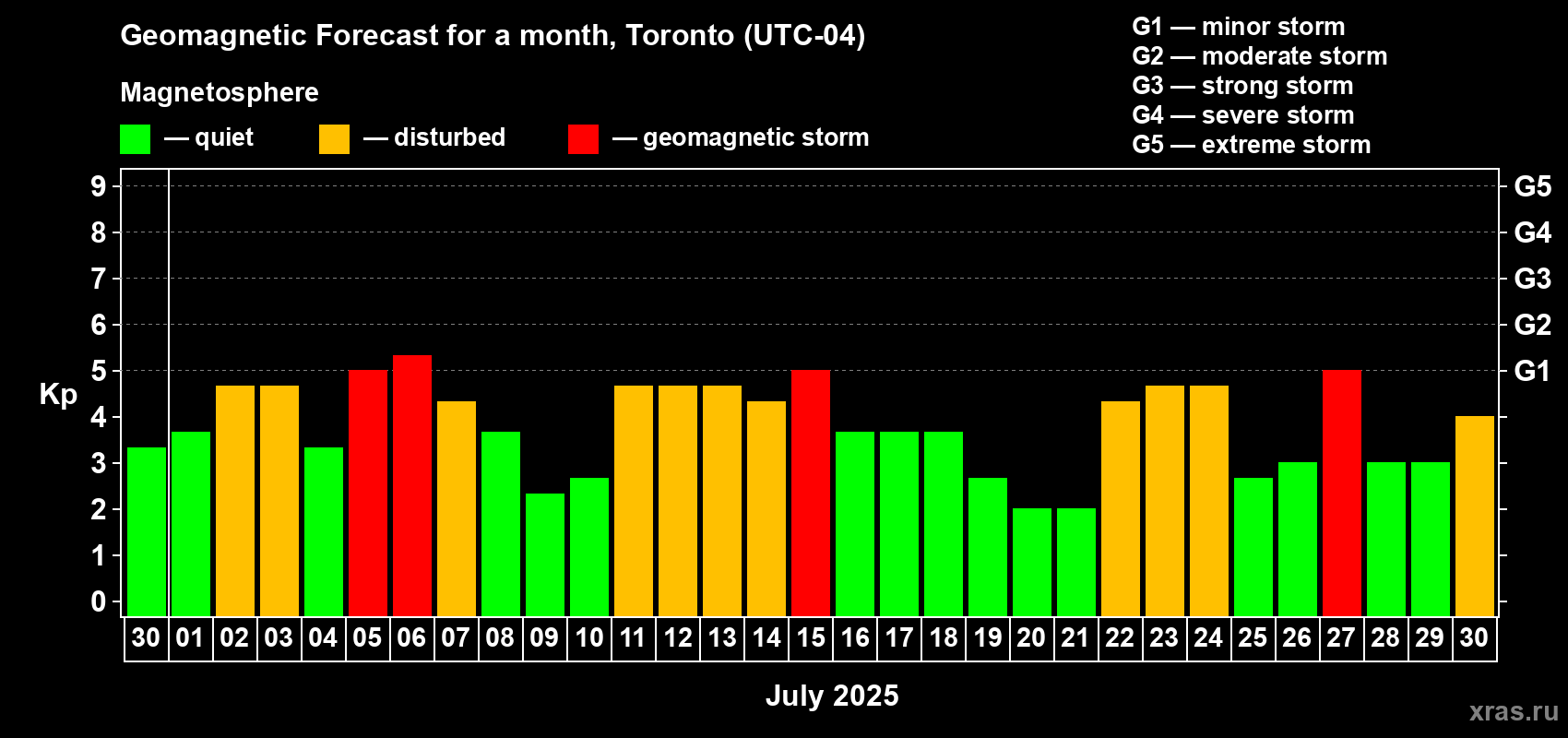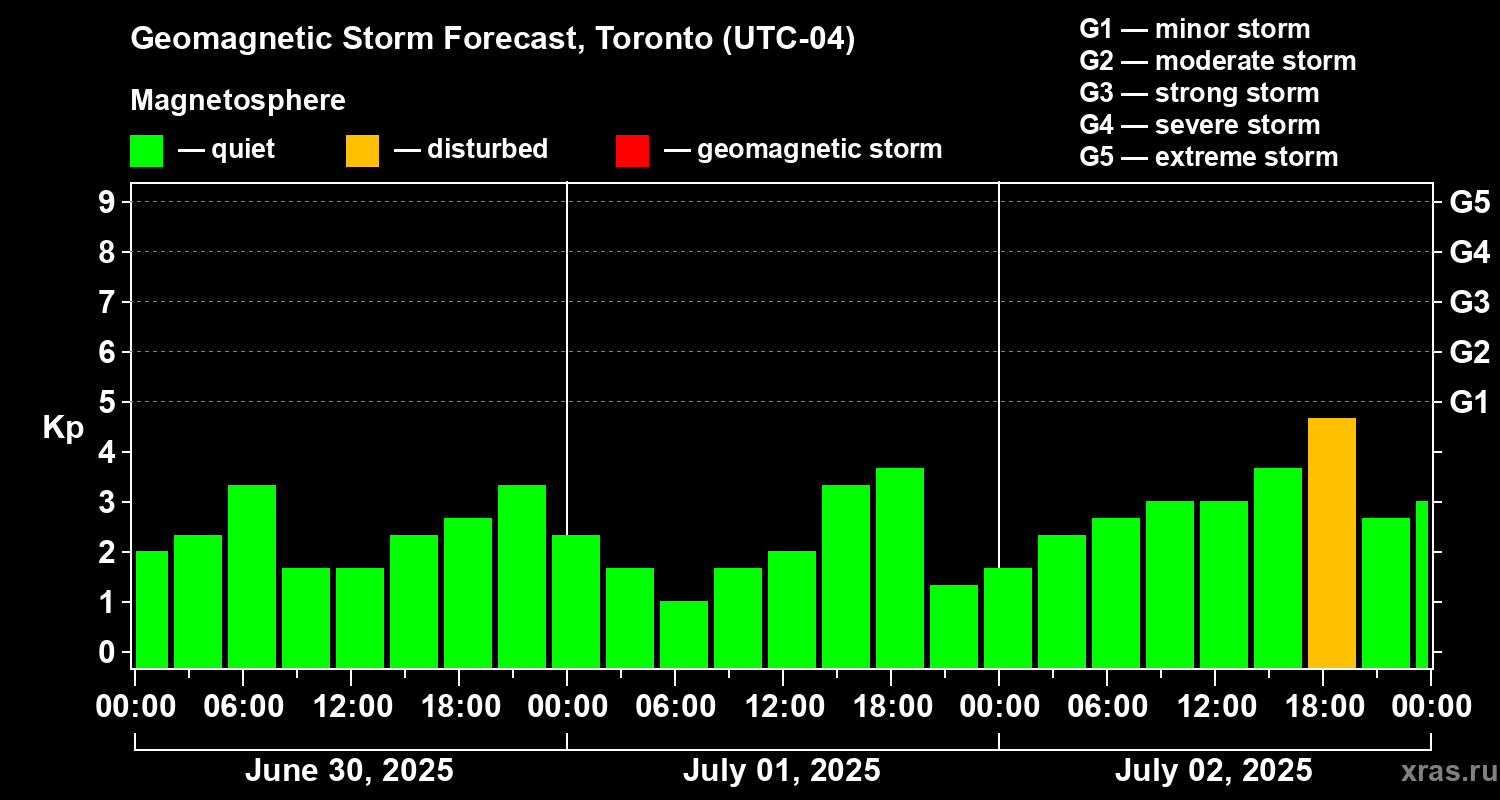 Geomagnetic storm forecast in Toronto for Jun 30, 2025