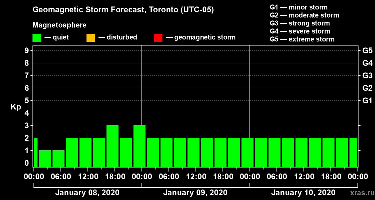 Geomagnetic storm forecast in Toronto for Jan 08, 2020