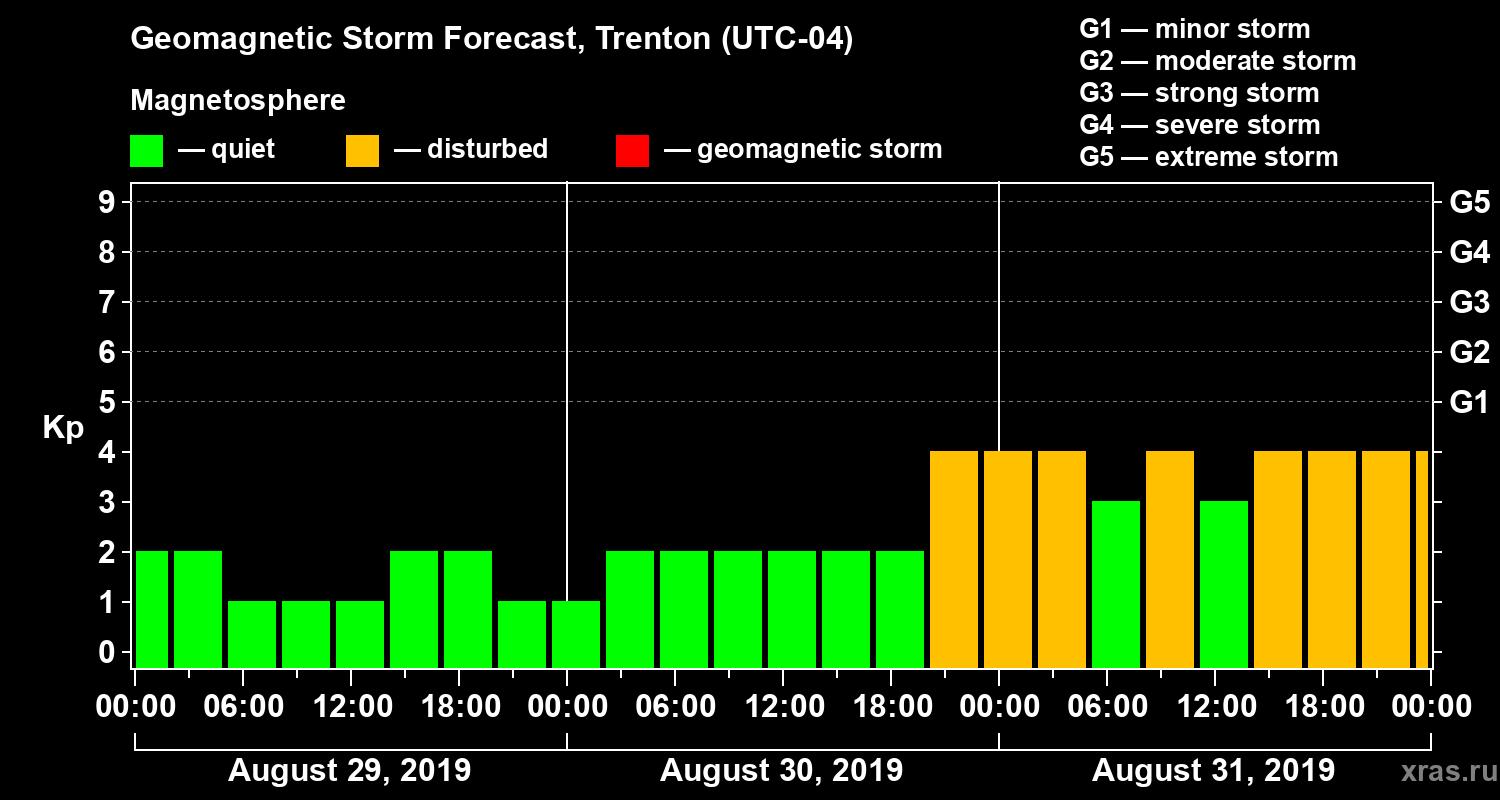 Geomagnetic storm forecast in Trenton for Aug 29, 2019
