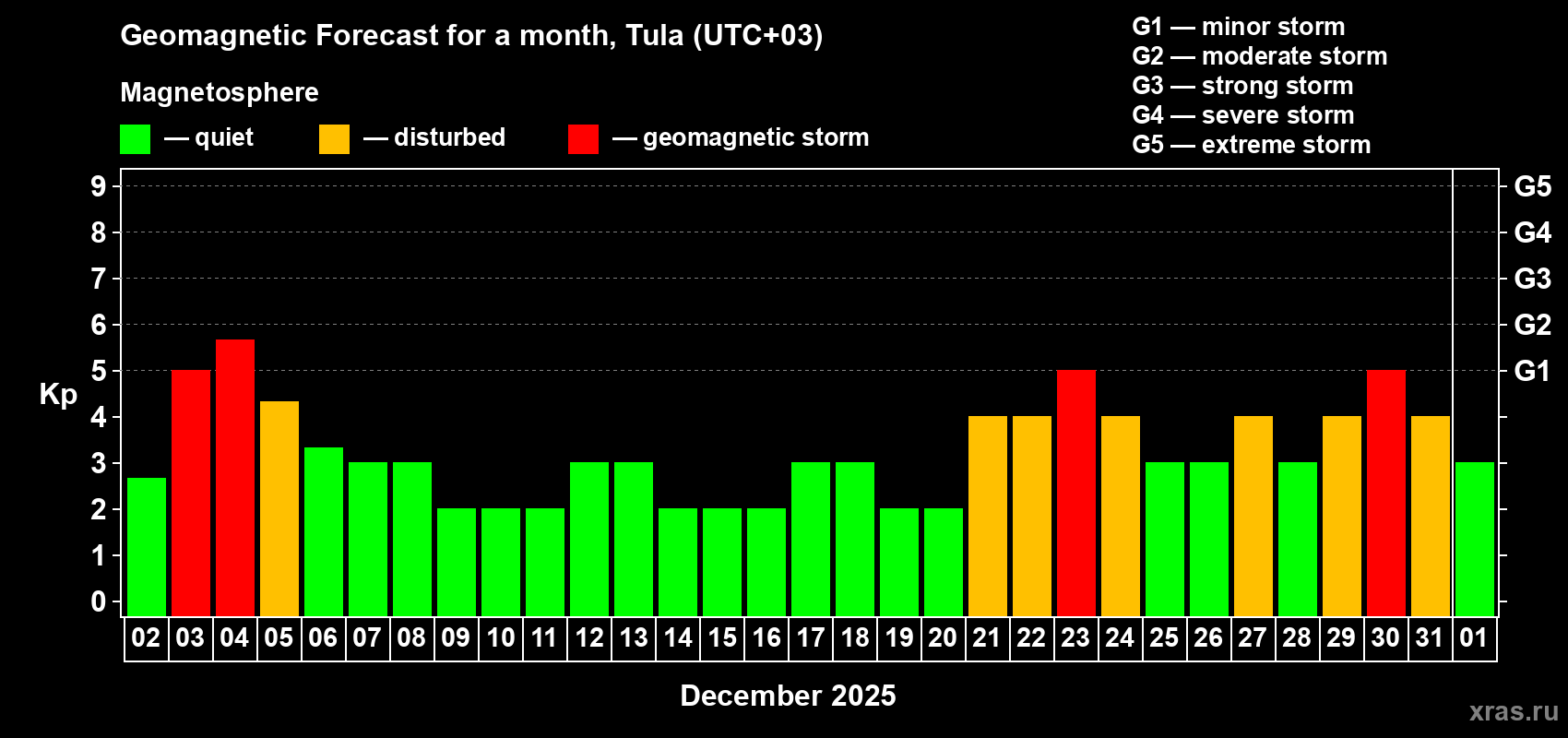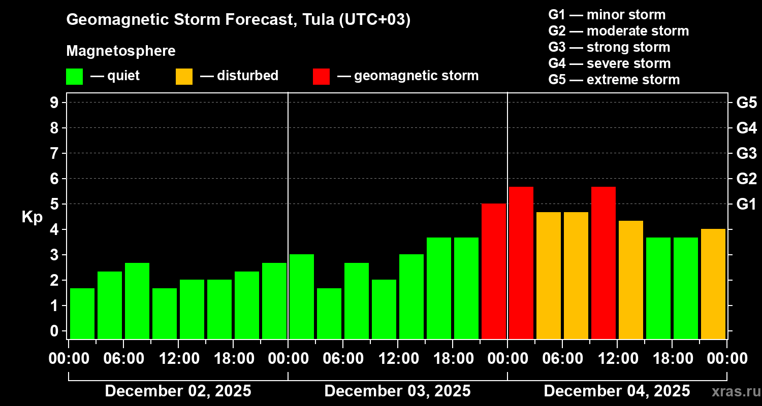 Geomagnetic storm forecast in Tula for Dec 02, 2025