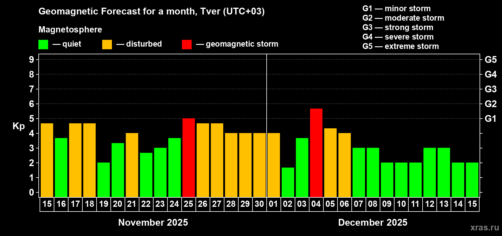 Geomagnetic storm forecast in Tver for Nov 15, 2025