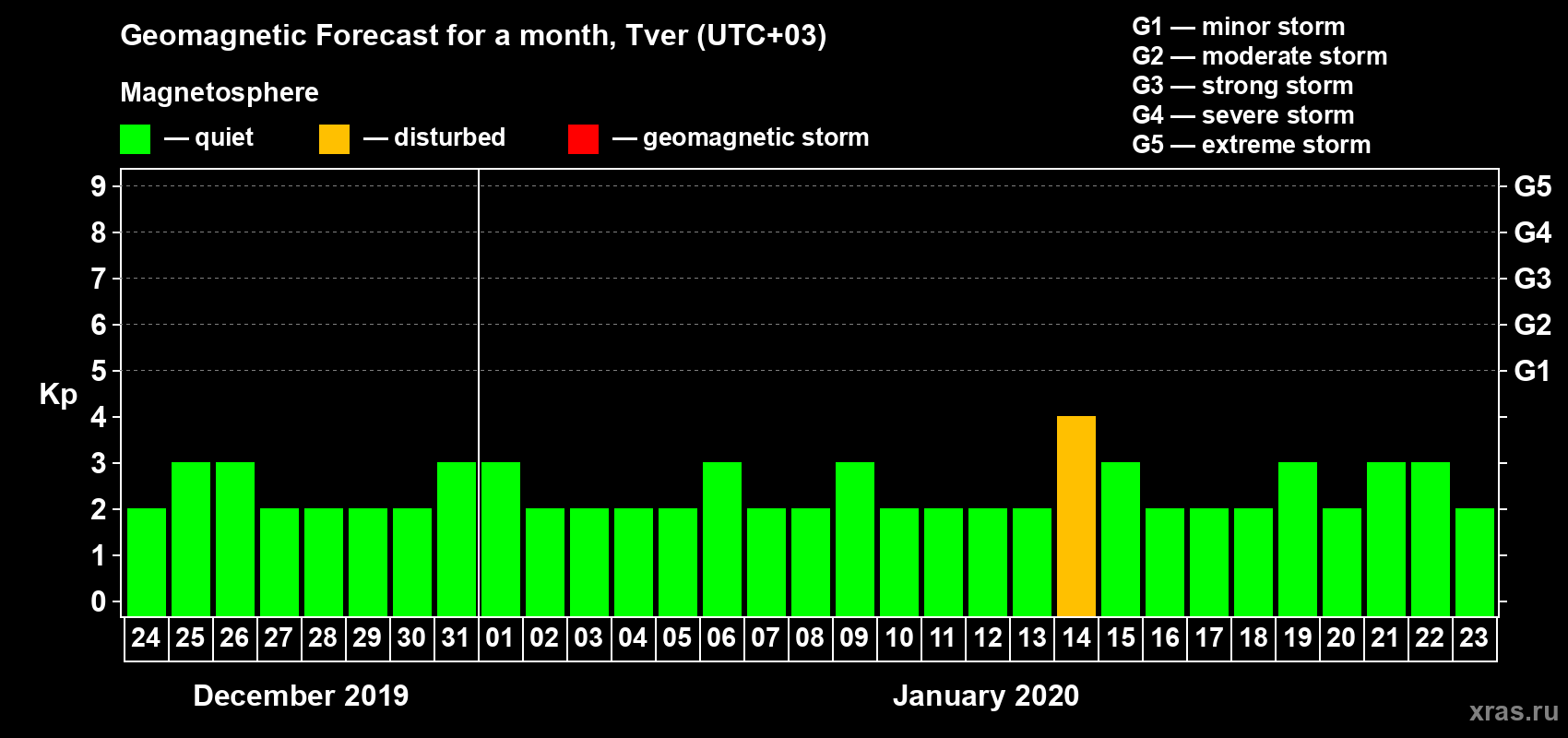 Geomagnetic storm forecast in Tver for Dec 24, 2019