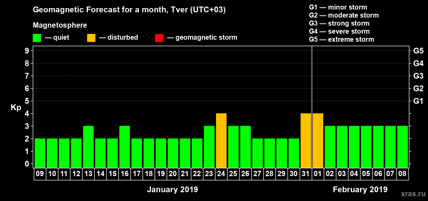 Geomagnetic activity forecast in Tver — Jan 09, 2019