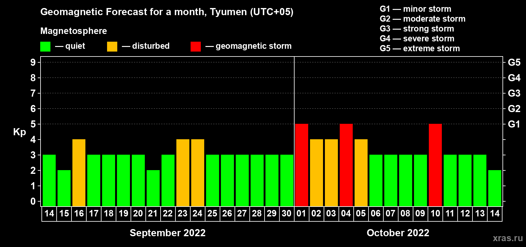 Geomagnetic storm forecast in Tyumen for Sep 14, 2022