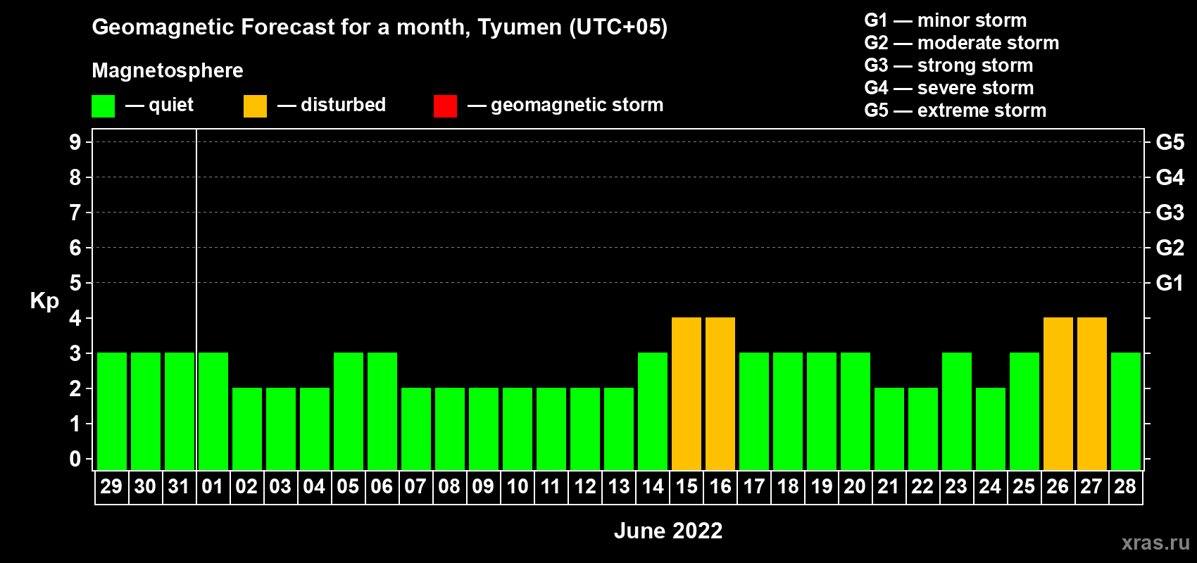 Geomagnetic activity forecast in Tyumen — May 29, 2022